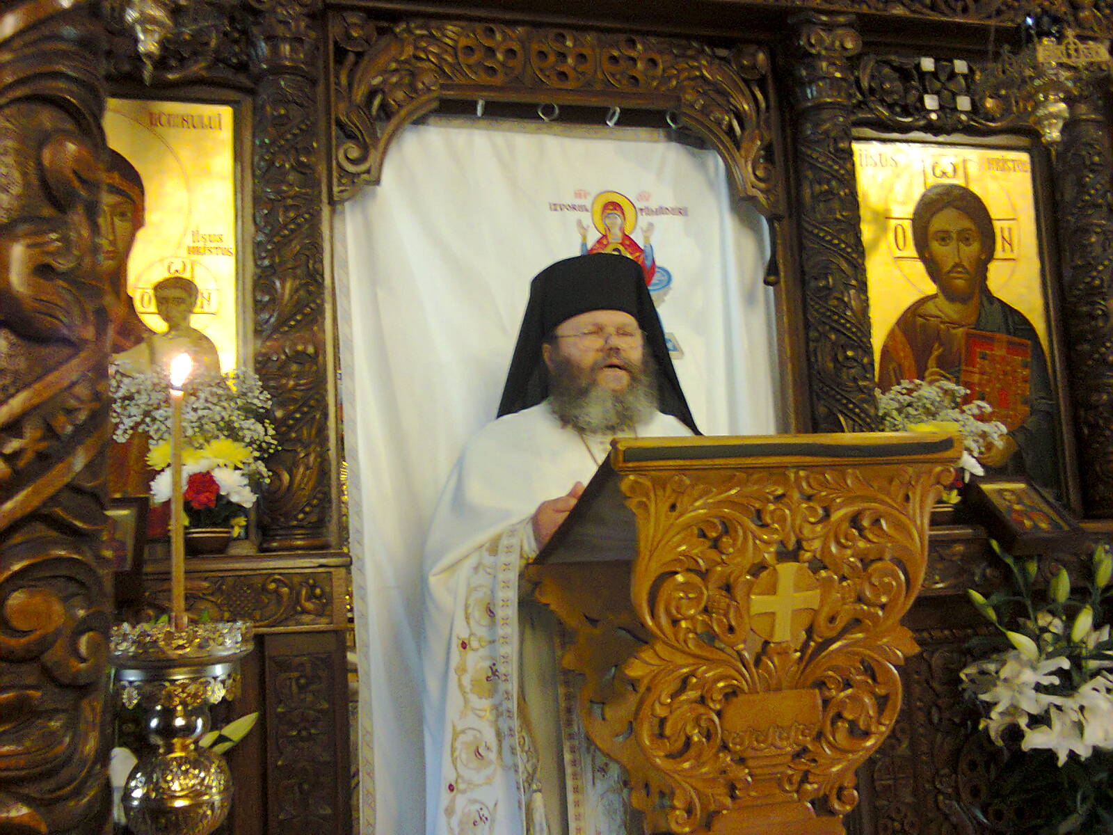 În continuare, Preacuviosul Părinte Stareţ a spus: ,,Sunt multe cazuri dintre acestea, când se face sfinţirea sufletelor şi a trupurilor noastre, iar, în această zi avem apa sfinţită în cinstea Maicii Domnului, când se prăznuieşte hramul, aşa cum este şi la această biserică nouă în care ne aflăm! Pentru că i s-a pus «hramul de temelie» pe 19 aprilie 1990 de către Mitropolitul Nestor al Olteniei şi s-a hotărât să fie hramul mănăstirii, dar, după aceea, sfinţindu-se subsolul şi demisolul s-a pus şi Hramul «Toţi Sfinţii», pentru că biserica noastră are consemnată o serie de sfinţi din toate timpurile şi din toate locurile! Dar, din 2011, de la canonizarea Sfântului Irodion a devenit al doilea hram al acestei biserici, Hramul «Sfântul Irodion» şi chiar dacă se dă mai mult de un hram la o biserică, se face la propunerea preotului sau a episcopului, pentru că Maica Domnului ne veghează şi Dumnezeu ne binecuvântează! După Sfânta Treime, Maica Domnului este cea mai sfântă fiinţă umană, o fiinţă smerită, pentru că foarte mult s-a scris despre Maica Domnului, de multe ori a fost adorată, dar, ea este «un munte de smerenie», cu toate că Maica Domnului «se deschide» numai către aceia care fac pasul spre credinţă. E ca o relaţie între două persoane, pentru că în cazul în care una dintre persoane «se deschide» şi cealaltă la rândul ei «se deschide» la suflet! Dacă actul de comunicare nu «se deschide», ele rămân două persoane închistate şi fără comunicare una cu alta! Mulţi au încercat şi încearcă să «se deschidă» spre Maica Domnului, când scriu tomuri despre ea şi care sunt cuprinse în «mariologie», adică ştiinţa în care se vorbeşte despre Maica Domnului, dar, Maica Domnului s-a «deschis» numai acelora le-a găsit capacitate de comunicare şi chiar compatibilitate! Deci, cu cât ne smerim şi avem o credinţă sinceră, Maica Domnului «se deschide», iar, dacă nu suntem sinceri primim un răspuns în funcţie de «poziţia» noastră. Dacă dai mult, mult primeşti, adică, dacă dai din tine dragoste, iertare, smerenie, dacă faci fapte bune, Domnul răsplăteşte însutit şi înmiit, de aceea, devine foarte important să avem deschiderea noastră, evlavia noastră către Maica Domnului! Aşa cum facem rugăciune către Dumnezeu, către Iisus Hristos şi către Sfânta Treime, la fel şi către Maica Domnului! De aceea, să nu treacă o zi, să nu treacă ore şi să nu facem rugăciune către Maica Domnului, să zivem: «Preasfântă Născătoare de Dumnezeu, miluieşte-mă…», iar, Hramul «Izvorul Tămăduirii» este un izvor nesecat de credinţă, pentru că Maica Domnului îi tămăduieşte pe toţi cei care au această determinare către iubirea în smerenie! Însă, răspunsul va fi pe măsura smereniei noastre şi a iubirii noastre! Să iubeşti pe tatăl tău, s-o iubeşti pe mama ta, pe copiii tăi cu inima, iar, Maica Domnului să ne fie ocrotitoare, să ne fie milostivă la Masa Sfintei Treimi, să ne ajute şi pe noi, totdeauna, în vecii vecilor, Amin”!