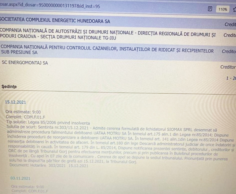 pentru achiziția certificatelor de CO2, în cel mai scurt timp. De menționat este faptul că societatea produce energie electrică în cogenerare pentru care încasează un preț mult mai bun față de anii trecuți dar și o bonificație semnificativă, lucru care dă posibilitatea societății să își revină și să poată fi, în viitor, performantă. De asemenea, primarul a atras atenția că va monitoriza atent cum vor fi cheltuiți banii primiți din partea primăriei dar și cei care sunt încasați de societate pe energie și bonificație. Conform contractului, administratorul special actual își încetează mandatul odată cu ieșirea uzinei din insolvență, lucru care s-a și întâmplat. În decizia instanței, este un termen scurt, de 7 zile de contestare a deciziei, dar nu există motive clare pentru a se întâmpla acest lucru. La ora actuala, AGA UATAA este compusă din doua membri, propuși de CL, respectiv, Ilie Petrescu – ALDE și Sorin Iovan, PNL. Liberalul, speriat de problemele prin care a trecut societatea și fugind de răspundere în urmă cu puțin timp, si-a înaintat demisia către CL Motru. În atare condiții, CL va numi un alt membru PNL, ținând cont că aceștia au majoritatea în CL și care vor avea greoaia sarcină să demareze, la foc automat, procedura pentru numirea unui alt director.