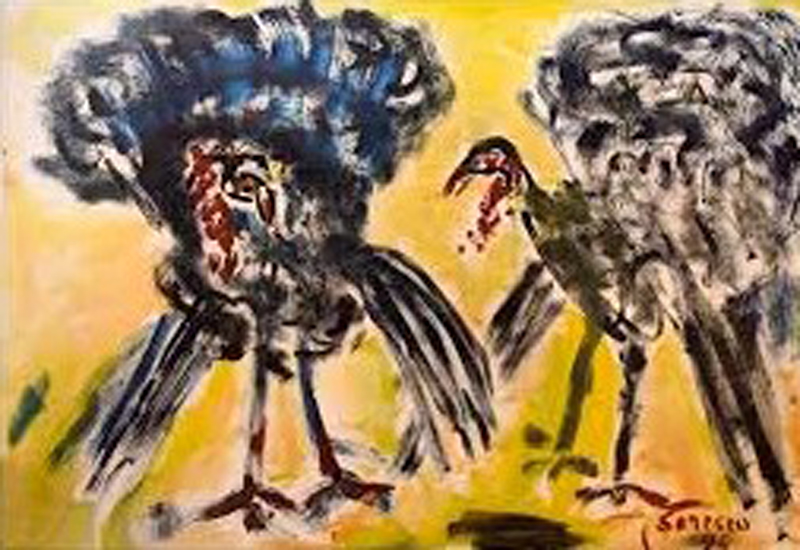Paznicul sălii, un domn mai în vârstă, văzându-mă cum întocmesc inventarul, începe să-mi dea târcoale. Mai iese, mai intră, nu mă slăbește din ochi, n-ar fi exclus să fi dat și vreun telefon. Deși statuile „din bardă și din secure” nu sunt din cele să le bagi în buzunar. De reținut: ceata coloanetor fără sfârșit (cum ar fi la Fra Angelico ceata îngerilor). Apoi: ceata cocoșilor. Meșterul crea cete de opere asemănătoare, ca și când ar fi fost interesat de un ritm anume, o metrică (cel mai adesea populară). Chiar expuse și privite separat, fiecare statuie are încărcătură de ritm, ca o frântură dintr-un vers. Poate că asta te fascinează la ele, fără să știi ce anume. Apoi: statuile lui Brâncuși cer să te-nvârți în jurul lor – pentru producerea amețelii. Soclurile sunt rotunde, ca pietrele de moară. Sau imitând motivul încrustăturilor de pe toiagul de alun, care se dă de pomană în Oltenia (cu o batistă legată de el, un măr înfipt în vârf și-un colac). Mi-am închis caietul și mă uit cum ruginește barda Lui, înfiptă într-un ciot. Foca e o navă. O navă înaintând prin rugină. Rugină despicata cu barda. Unde săreau așchîiie? Dacă pui cocoșii, păsările și coloanele laolaltă, îți iese o pădure măiastră, fermecată, de lemn, bronz, piatră. Ca pădurile din basme. „Atunci fata numai ce aruncă pieptenul în urma și-odată crescu o pădure înaltă și deasă” etc. În pădurea aceasta intri printr-o poartă de lemn ori piatră și stai rezemat de-o coloană infinită, pridvor la a fost odată ca niciodată, și n-o să mai fie niciodată ca odată.