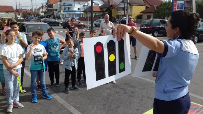 acțiune în parcarea unor supermarketuri din Târgu-Jiu, la care au participat 190 de copii cu vârste cuprinse între patru și 11 ani. “Micuții au ascultat cu interes lecțiile prezentate de