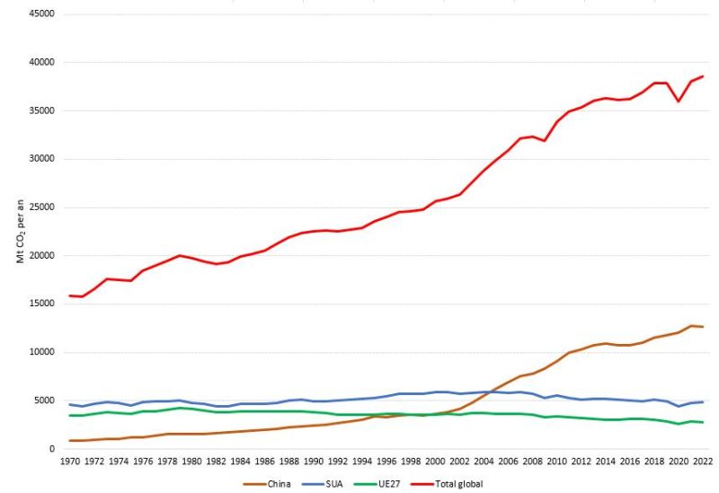 Sursa: Comisia Europeană, Joint Research Centre (JRC), EDGAR (Emissions Database for Global Atmospheric Research) Community GHG database