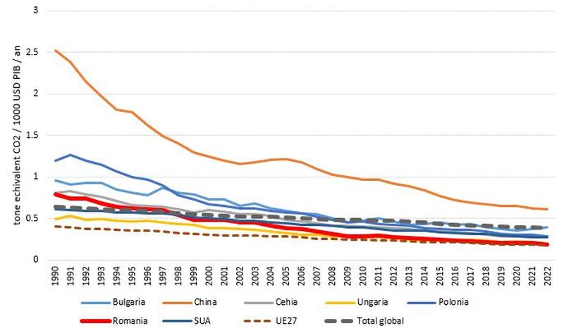 Pe parcursul ultimelor decenii, în România, s-au înregistrat reduceri semnificative de emisii de gaze cu efect de seră. Potrivit datelor publicate atât de Eurostat, cât și celor rezultate din baza de date EDGAR, România își redusese deja nivelul net al emisiilor de gaze cu efect de seră la aproape jumătate în anul 2000 față de nivelul din 1990, în mare parte și ca urmare a schimbărilor structurale ale economiei în perioada post-comunistă (de exemplu, reducerea semnificativă a activității industriei grele și a utilizării cărbunelui). În anul 2021, emisiile nete de gaze cu efect de seră ale României reprezentau, conform Eurostat, doar 29 la sută comparativ cu nivelul din 1990. Cu toate acestea, îndeplinirea obiectivelor climatice vine la pachet o serie de provocări, cum ar fi decarbonizarea sistemului energetic, în ansamblul său. Principalii piloni ai procesului de decarbonizare sunt eficiența energetică, electrificarea industrială, combustibilii, materiile prime și sursele de energie cu emisii scăzute de carbon, captarea, utilizarea și stocarea carbonului.