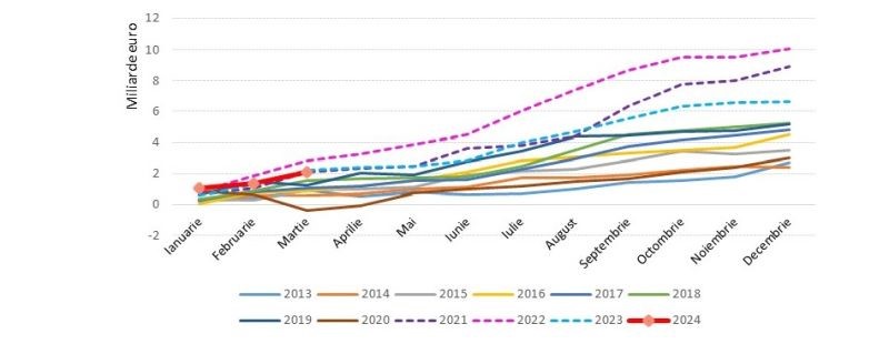 Figura 5. Investițiile directe ale nerezidenților în România, valoare cumulată de la începutul anului