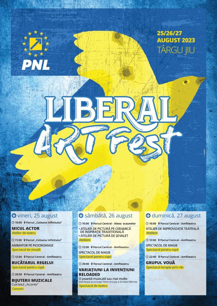 Organizația PNL organizează în acest weekend LiberalARTFest, un festival de artă, acasă, în orașul lui Brâncuși. Vor fi trei zile de evenimente la Târgu Jiu dedicate atât adulților, cât și celor mici.