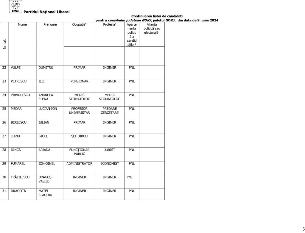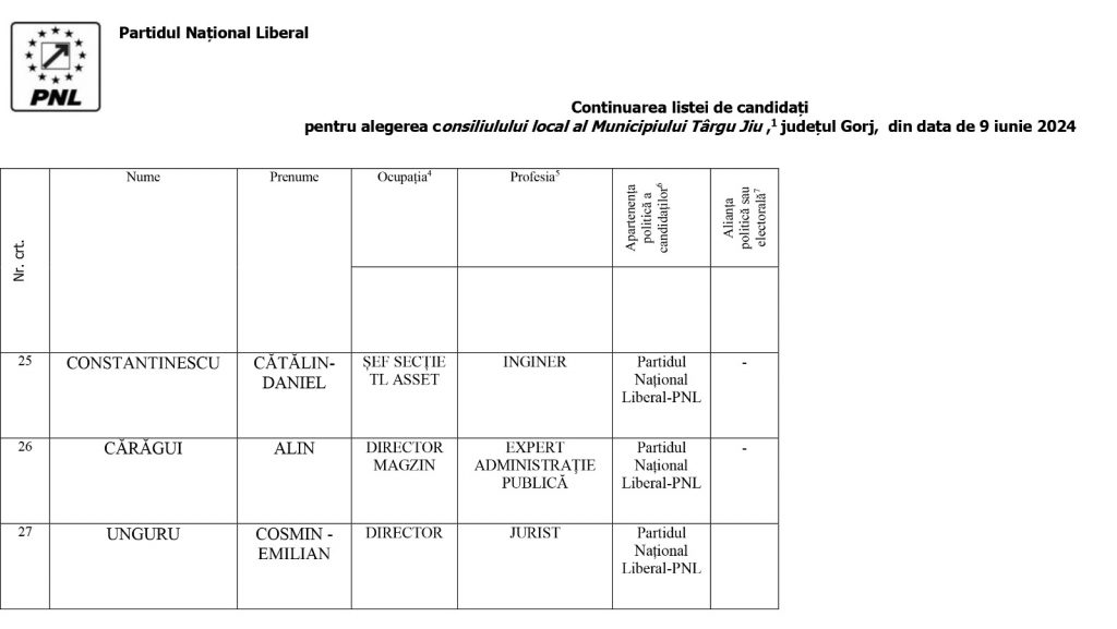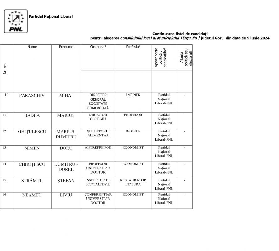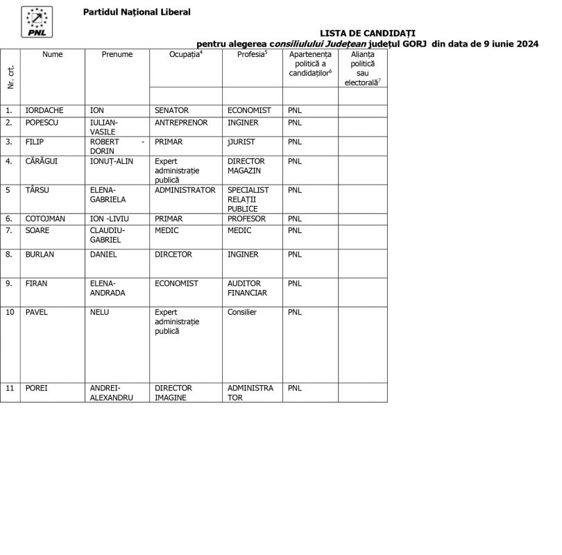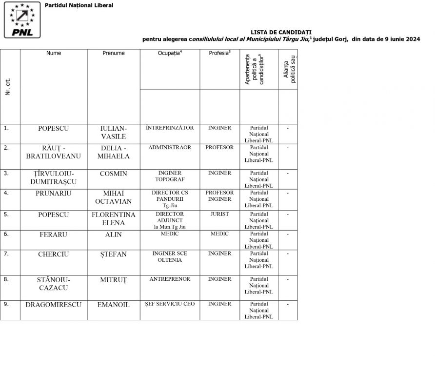 Partidul Național Liberal Gorj a depus candidaturile la Consiliul Județean și Primăria Târgu Jiu, a anunțat organizația astăzi.