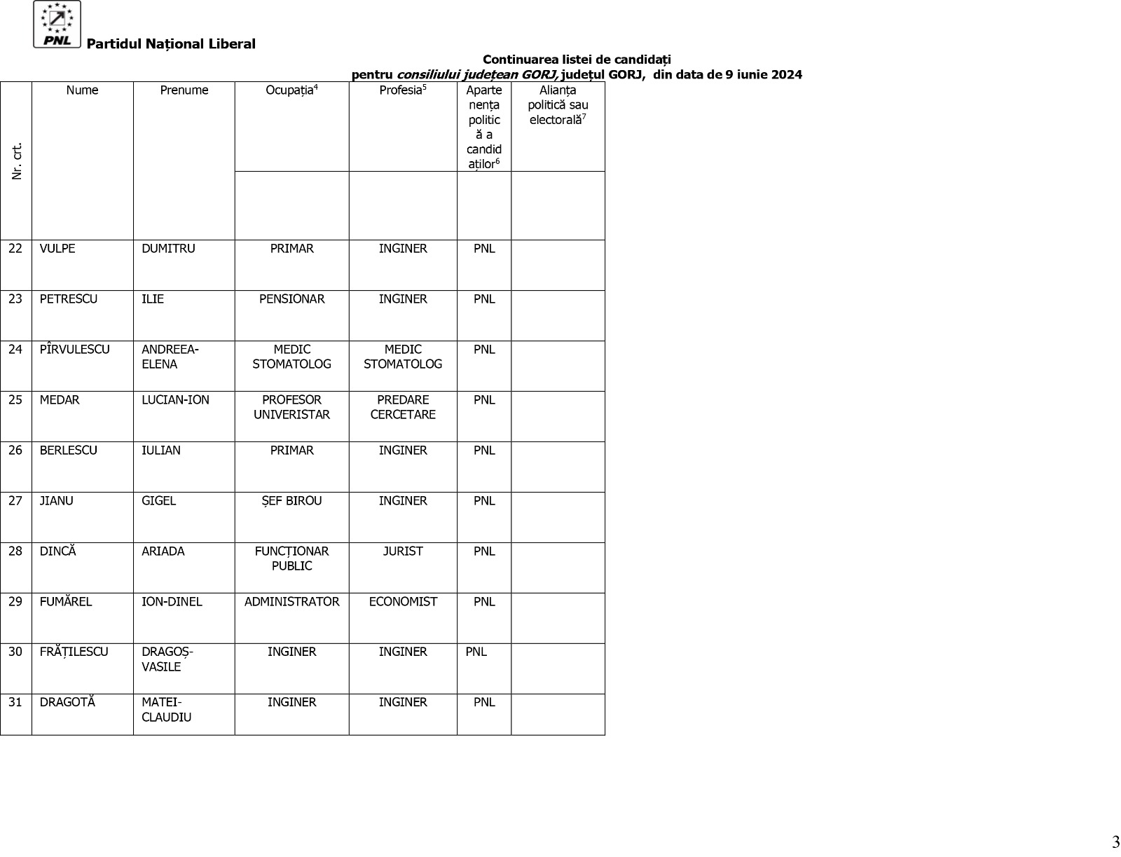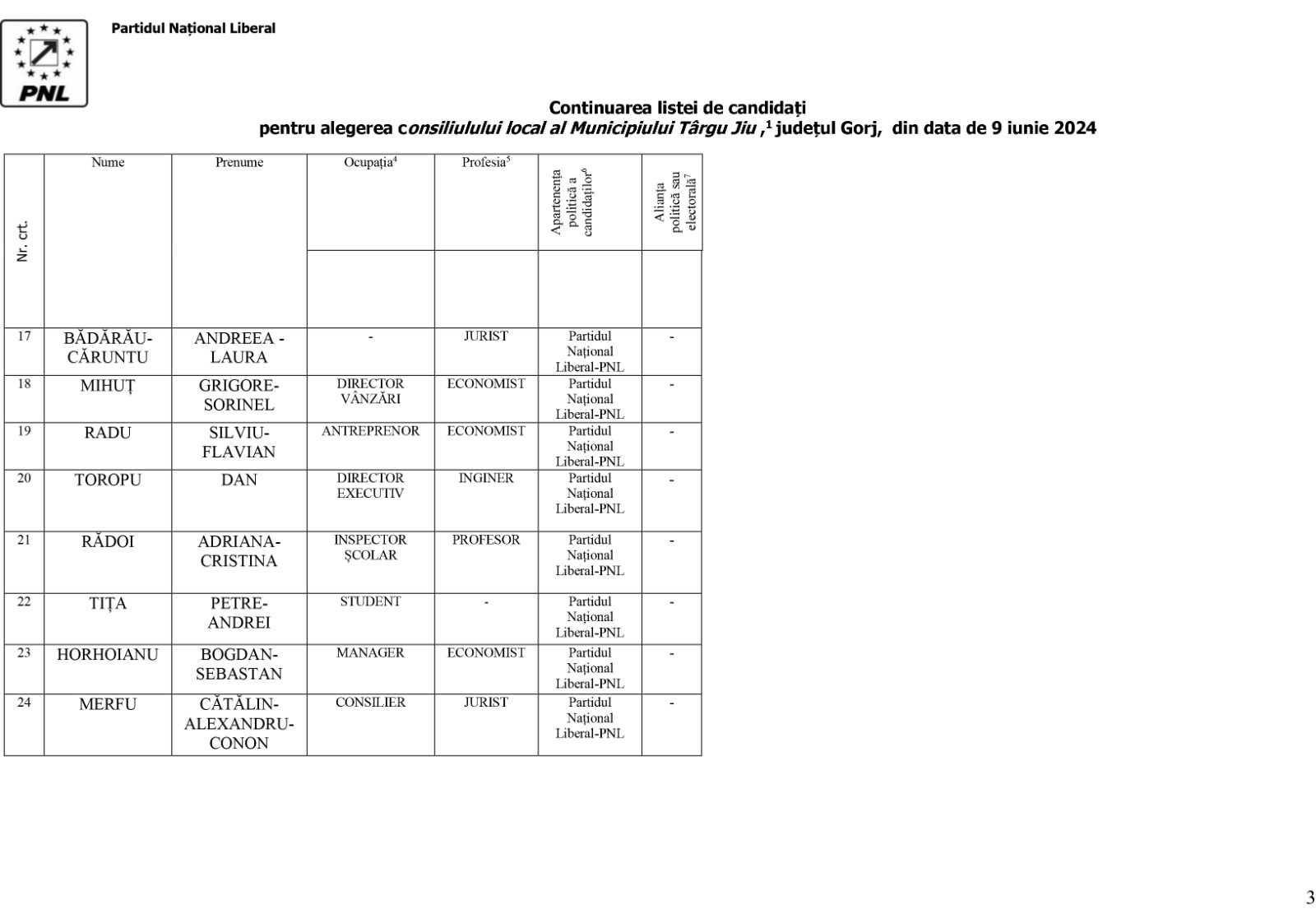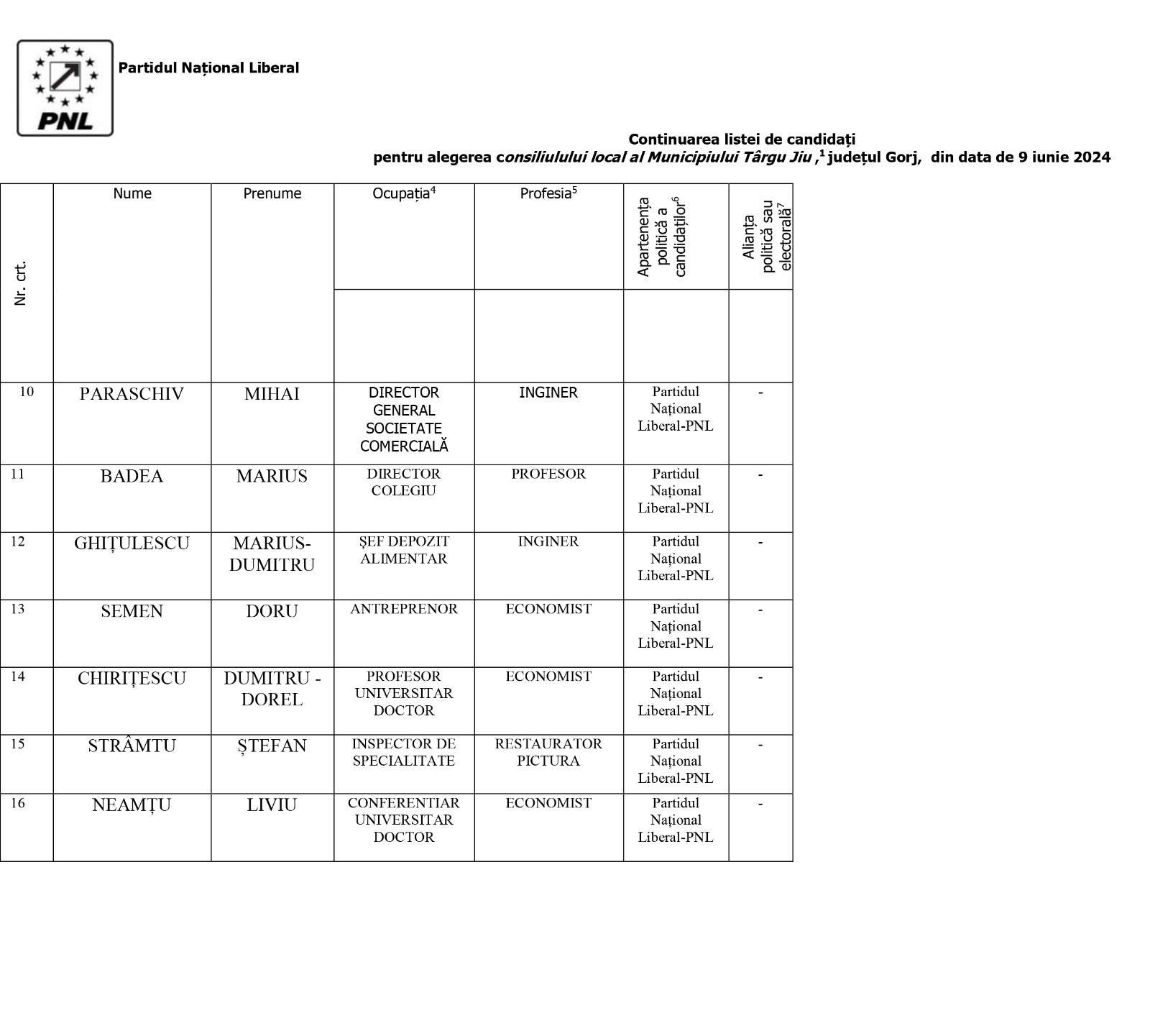 Partidul Național Liberal Gorj a depus candidaturile la Consiliul Județean și Primăria Târgu Jiu, a anunțat organizația astăzi.