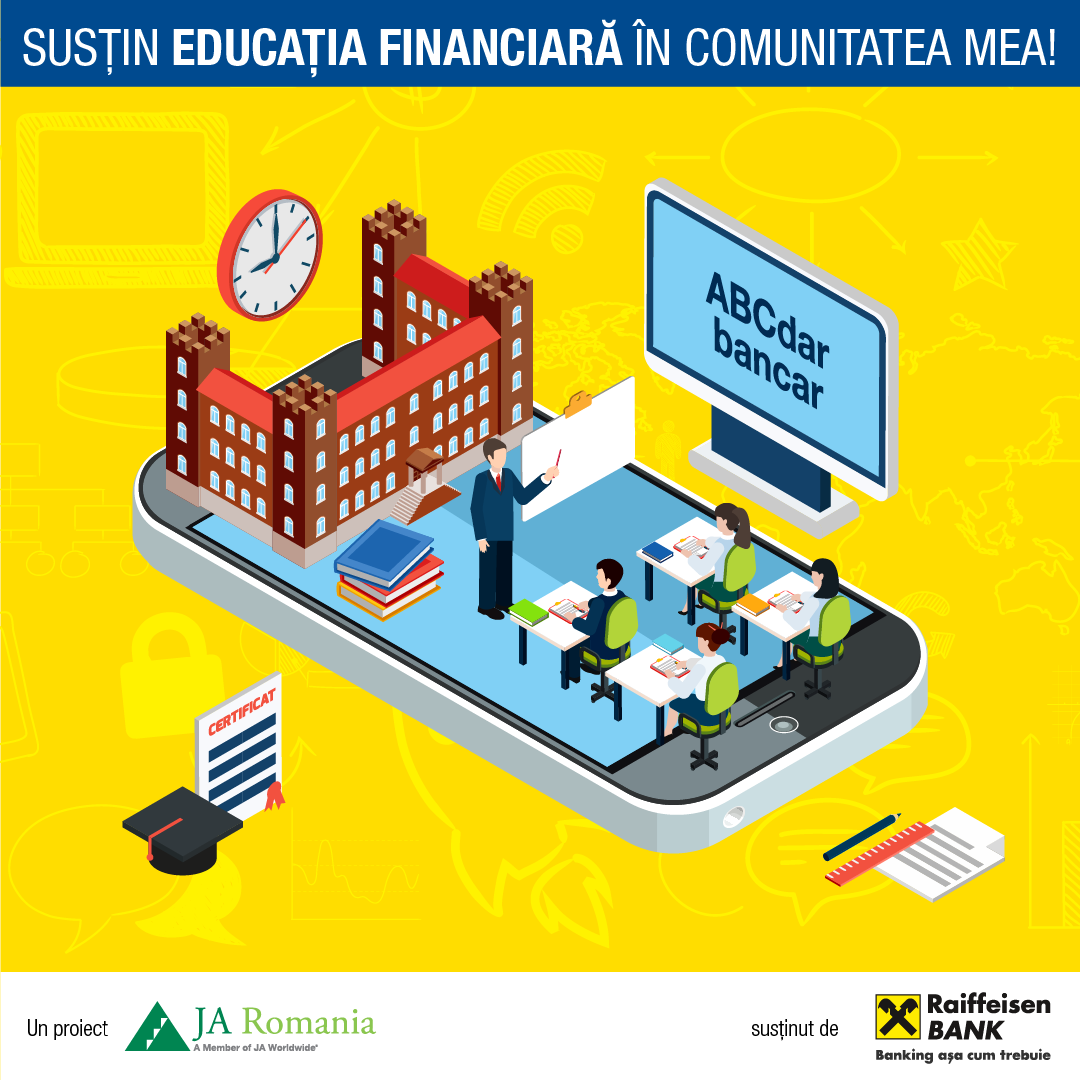 Până la data de 14 mai, liceele din țară se pot înscrie în program, implicându-și elevii să urmeze cursul de educație financiară ABCdar bancar, dezvoltat pe platforma educațională JA Inspire™ și accesibil utilizând orice dispozitiv conectat la internet (smartphone, tabletă, laptop sau PC) ori prin intermediul aplicațiilor Android și iOS. ,,Fiecare licean care parcurge cursul de educație financiară ABCdar bancar își poate ajuta școala să obțină sprijin financiar pentru echipamente tehnice în timp ce beneficiază de resurse educaționale moderne, cu feedback imediat, care îl ajută să își însușească noțiuni de bază despre planificarea bugetului, investiții, metode moderne de plată și economisire. La edițiile anterioare, peste 55.000 de elevi liceeni au parcurs modulul ABCdar bancar în format digital interactiv, iar 15 licee teoretice și tehnologice din 11 județe au beneficiat de sprijin financiar pentru echipamente tehnice și dotări”, au anunțat reprezentanții JA România. Mai multe detalii despre calendar și procesul de înscriere sunt disponibile la https://jar.ro/abcdarbancar. Inițiativa este la a patra ediție și face parte din programul de educație financiară dezvoltat, începând cu anul 2010, de JA România în parteneriat cu Raiffeisen Bank. Din 2018, modulul ABCdar bancar în versiune digitală interactivă este la dispoziția liceelor participante la programul JA de educație financiară.