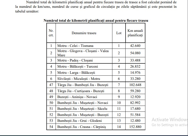 „Obiectul prezentei achiziții îl constituie delegarea sarcinilor şi responsabilităţilor către operatori economici cu privire la prestarea propriu-zisă a Serviciului public de transport județean de persoane prin curse regulate pe raza administrativ-teritorială a județului Gorj, inclusiv dreptul şi obligaţia de a administra şi de a exploata infrastructura de transport aferentă serviciului. Serviciul public de transport județean prin curse regulate la nivelul judeţului Gorj face parte din sfera serviciilor comunitare de utilitate publică și cuprinde totalitatea acțiunilor și activităților de utilitate publică și de interes economic și social general desfășurate la nivelul unităţii administrativ-teritoriale judeţul Gorj, sub controlul, conducerea sau coordonarea Consiliului Judeţean Gorj, în scopul asigurării serviciului public de transport județean de persoane”, potrivit caietului de sarcini.