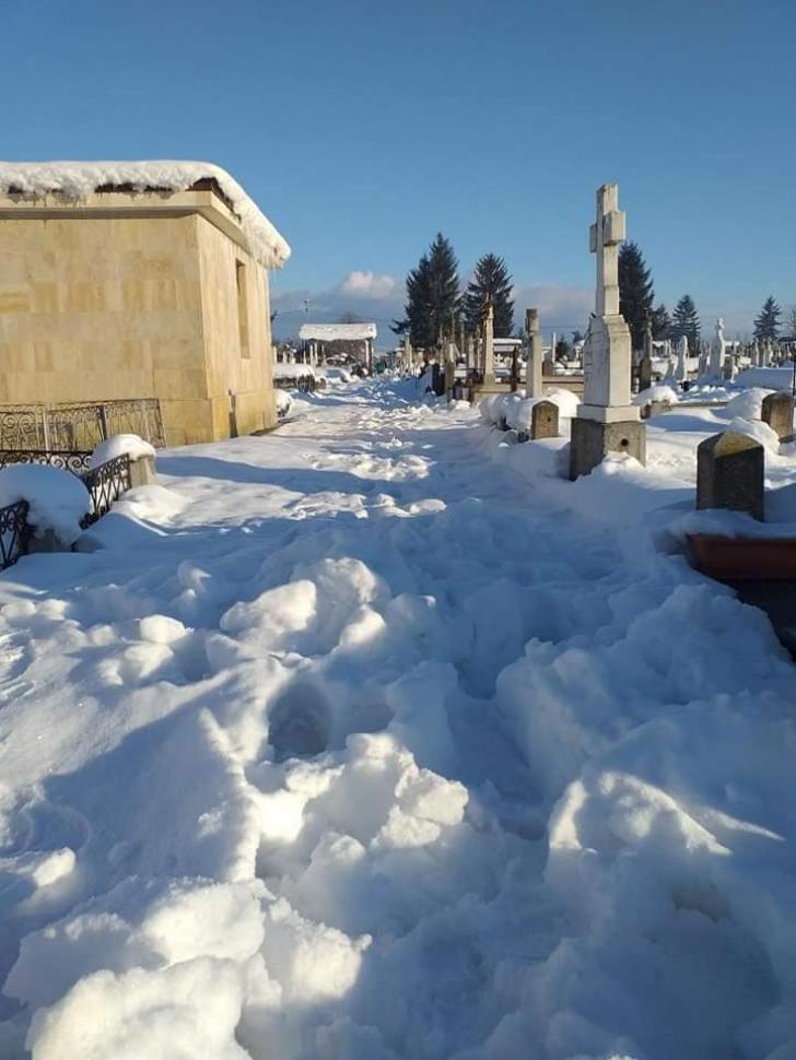 Mentionam ca deszapezirea in cimitir se face manual ,nefiind loc pentru introducerea utilajelor.