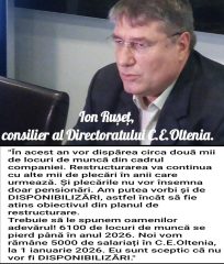 ”Domnul Ion Rușeț, Consilier al Directoratului C.E.Oltenia, ne spune foarte clar ce va urma!