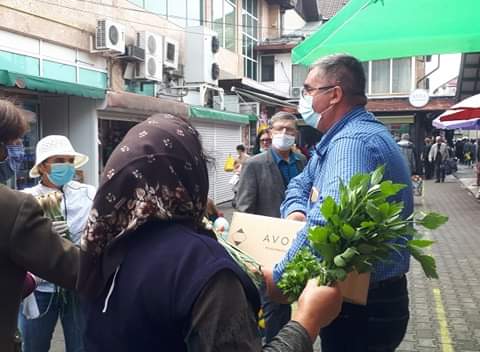 Mai exact, pentru un maxim de igienă, liderul PER a pus câte două măști într-un plic, oferind gratuit protecție pentru o zi de lucru vânzătorilor, și siguranță cumpărătorilor din Târgu-Jiu.