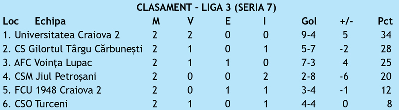 Universitatea Craiova 2 6 – 3 CS Gilortul Târgu Cărbuneşti