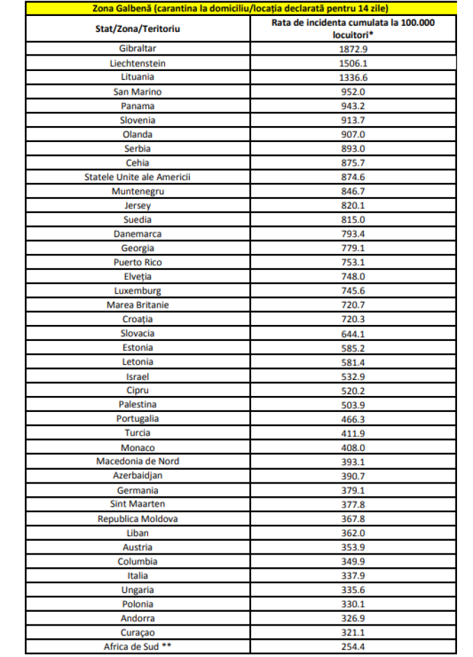 Lista actualizată a țărilor pentru care se impune carantina la sosirea în România