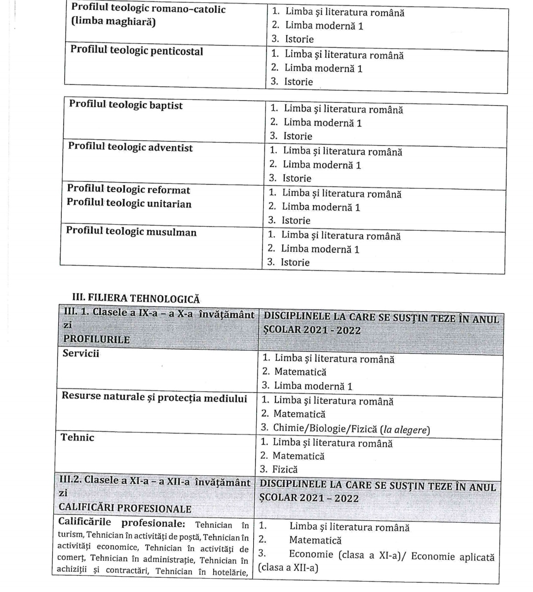 În funcție de situația epidemiologică existentă la nivelul fiecărei unități de învățământ, respectiv al fiecărei formațiuni de studiu (clase), conducerea unității de învățământ stabilește, prin decizie a consiliului de administrație, calendarul desfășurării tezelor până la sfârșitul fiecărui semestru al anului școlar 2021-2022. În primul semestru, tezele vor fi programate începând, de regulă, cu data de 6 decembrie 2021.