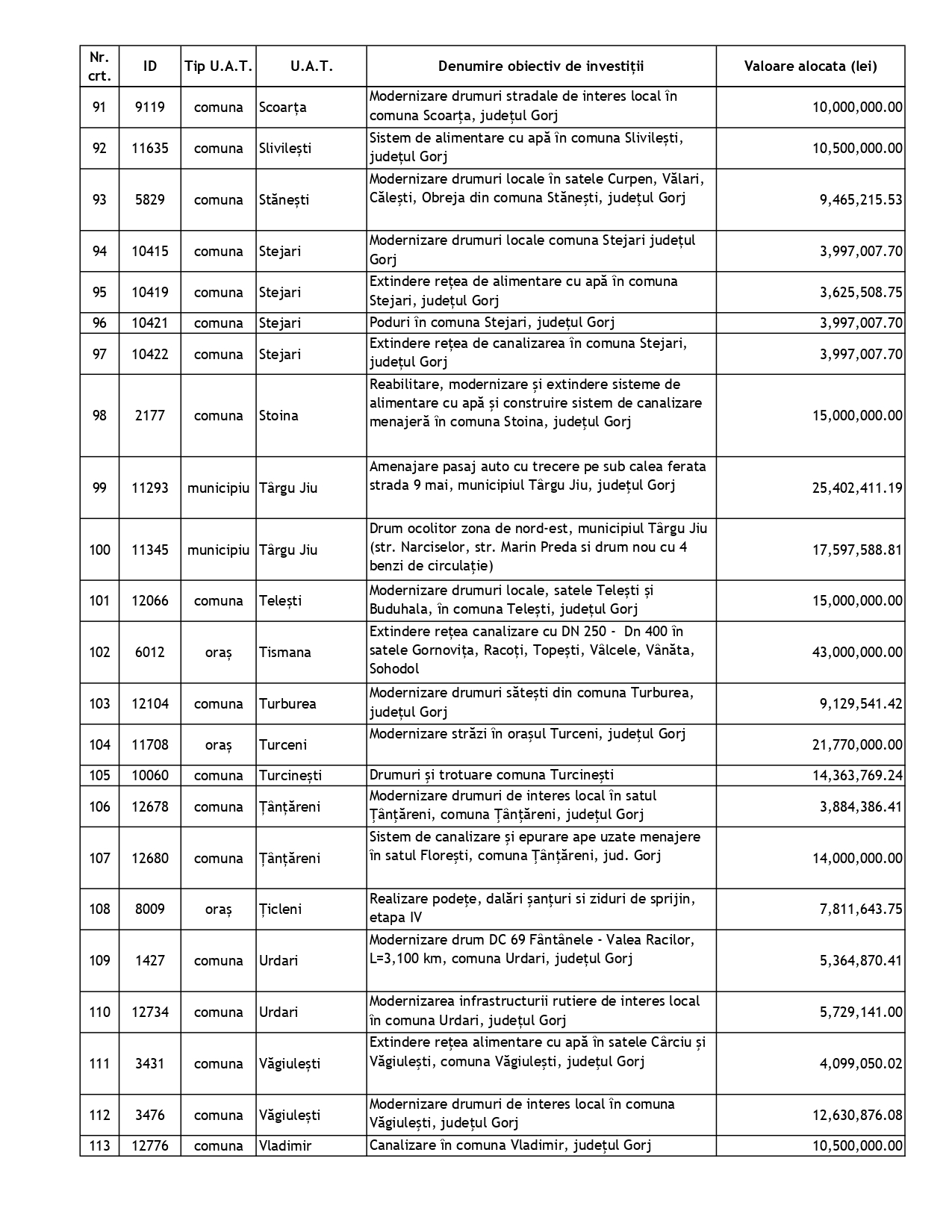 În schimb, Primăria Turceni va primi peste 21 milioane de lei pentru reabilitarea unor străzi.