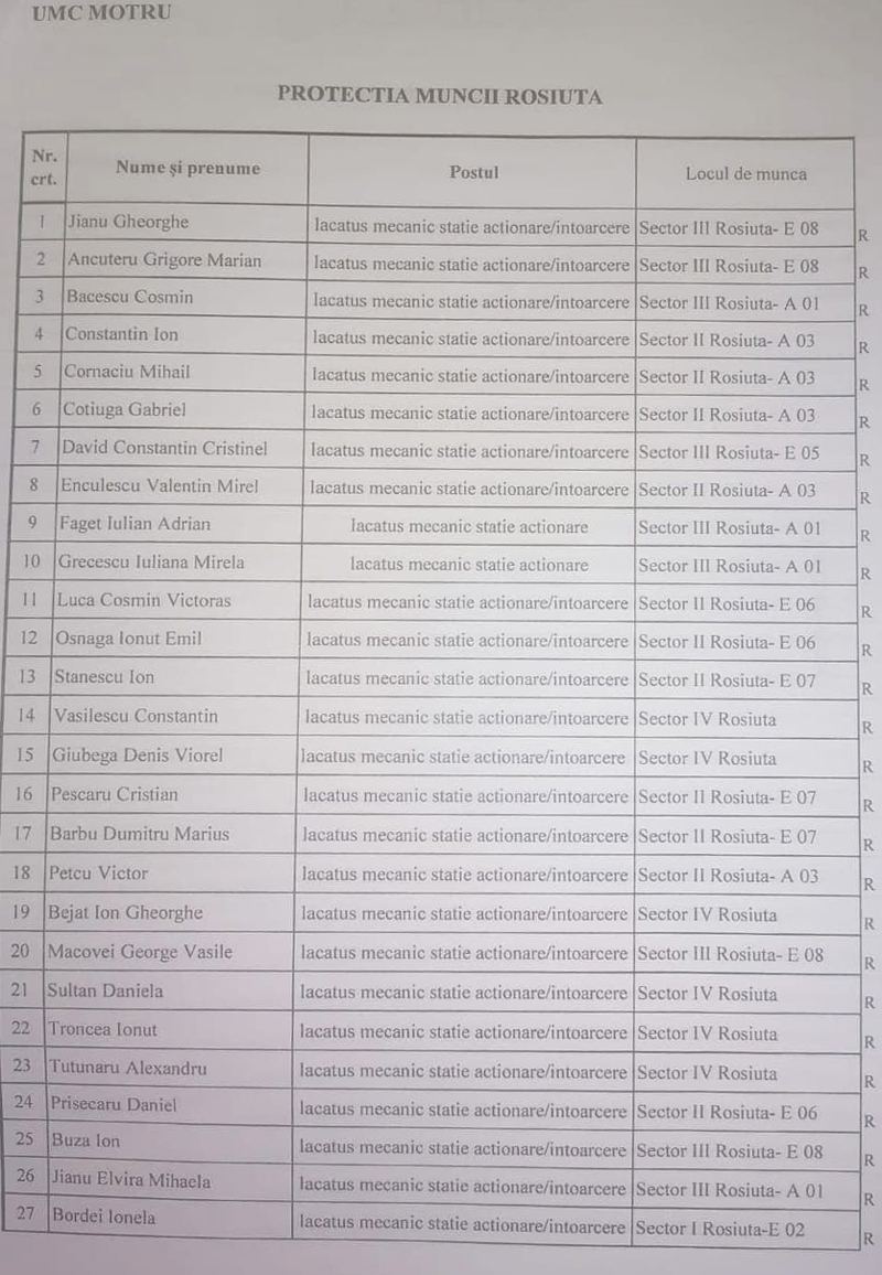 Sistemul de Pile, Cunoștințe și Relații (PCR) a funcționat la mare artă în ce privește angajările, de dosar penal, din Cariera Roșiuța. De altfel, în jur de 160 de persoane au crescut numărul salariaților din unitatea minieră motreană, de la începutul acestei săptămâni, o mare parte fiind foști salariați Minprest, în special femei, neveste ale unor sindicaliști cunoscuți în unitate, rude ale directorilor din minerit, ale politicienilor PNL sau USR din zona Motru. Grav este că pentru o parte dintre aceste angajări s-ar fi plătit sume generoase persoanelor cu trecere în întocmirea listelor pe care vi le prezintă, în exclusivitate, Gorjeanul. Și mai grav este că Nelu Roșca, liderul sindicatului majoritar din carieră, a avut pretenția, ridicată personal în sala de apel, ca noii veniți să treacă, cu mic cu mare, în sindicatul pe care, cu onor, îl conduce. Ca la PCR…