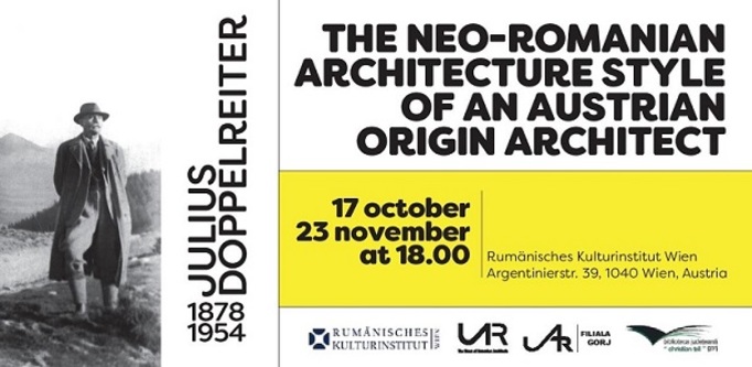 Galeria ICR Viena prezintă în perioada 17 octombrie ‒ 23 noiembrie expoziția „Julius Doppelreiter (1878 – 1954): Stilul arhitectural neo-românesc“. Proiectul este rezultatul colaborării dintre Uniunea Arhitecților din România (Sucursala Gorj) și Biblioteca Județeană „Christian Tell“ din Gorj şi prezintă creaţia arhitectului gorjean de origine austriacă.