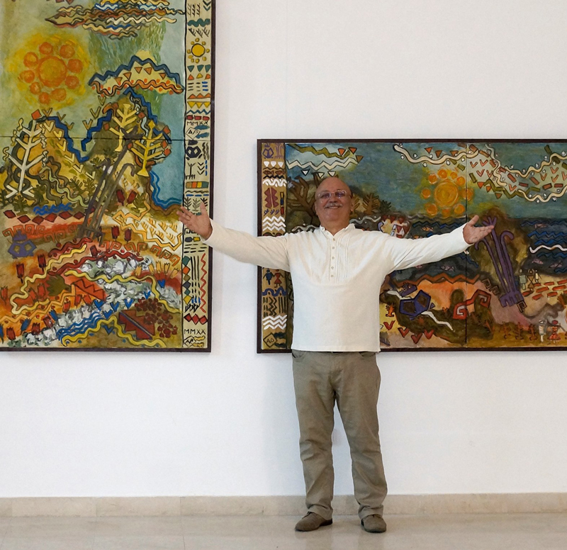 În pictura lui de astăzi, evitând capcana unor inevitabile hățișuri epice, reluarea obsesivă a aceluiași motiv face ca înlăuntrul lui scenariile să pară numeric nelimitate. Reprezentarea explicită prin semne și simboluri confirmă o viziune contemporană pe care o propune de data asta pe suprafețe de mari dimensiuni, în care detaliile sunt puternic exacerbate, transferând asupra ansamblului o relație cantitativă care invită la corelări și întrepătrunderi nebănuite de lumină și culoare, într-o ordine definitorie, bine susținută conceptual. Dincolo de tema așa-zis populară cu care încearcă să singularizeze evocarea aceluiași peisaj, pretextul seduce, iar forma finală devine emblematică prin atenția cu care e povestită secvențial, folosind de fiecare dată același dicționar de semne și simboluri.