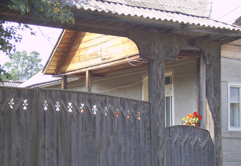 Satul încă pare a mai trăi dincolo de aceste însemne spectaculoase încorporate dimensiunilor estetice sedimentate definitiv în subconştientul colectiv. Dincolo de porţi sunt casele – explozii de alb ruginit – atent încercate, de cele mai multe ori pe trei din cele patru părţi, de strânsoarea pridvoarelor preţios traforate în lemnul şi el tot de stejar. Pridvorul este singurul loc unde ţăranul simte nevoia unei „detaşări estetice” în spaţiul arhitectural integrat de când lumea peisajului natural înconjurător.