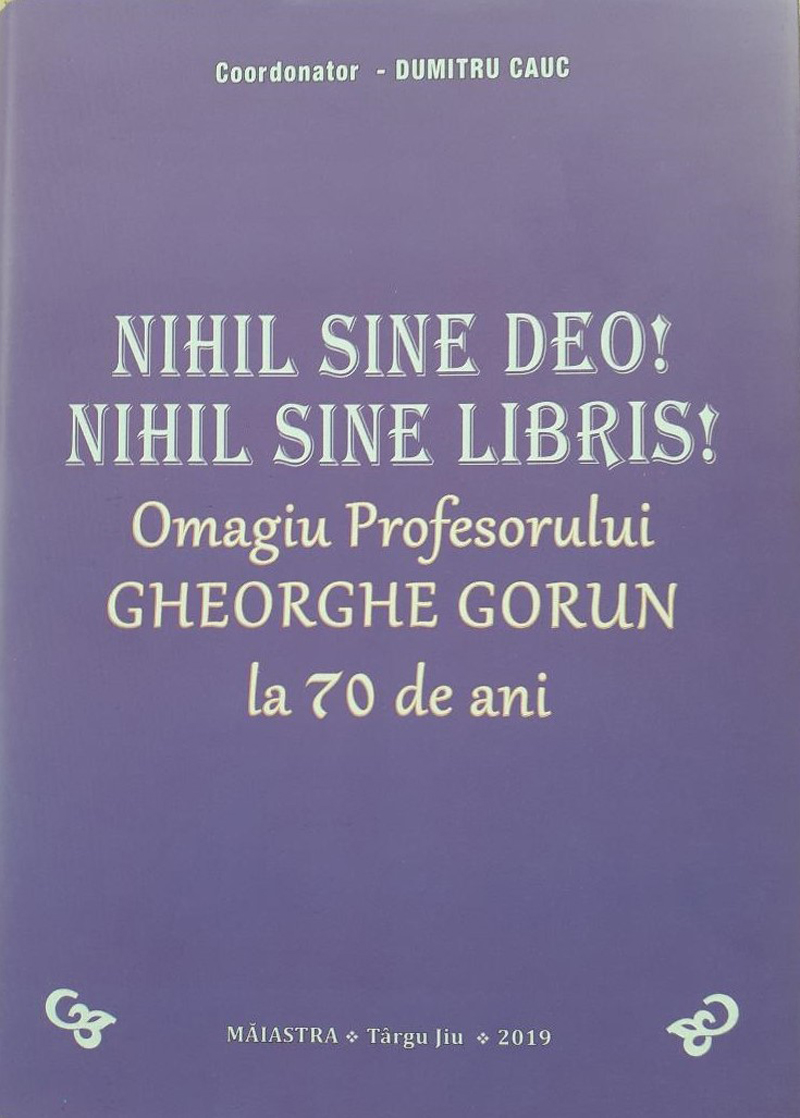 Titlul textului nostru a apărut prima dată pe coperta cărții unui american, aflată în bogata bibliografie cercetată de profesorul Gorun. Ne-a plăcut și l-am „împrumutat”, rămânând astfel dator amândurora. Scrisoarea noastră de astăzi se vrea a fi un omagiu tardiv adus Profesorului, la împlinirea celor 70 de ani, aniversară de acum doi ani, la care nu am fost prezenți. La mulți ani! Nihil sine Deo! Nihil sine Libris!
