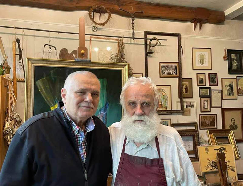 Eram la masă, în pridvorul Muzeului Țărănesc cu Artă Contemporană, ascunși de soare după un smochin mirosind tot a miez de vară, mă uitam la scriitor ,,ca la un munte de gheață și mă treceau toate căldurile“. Poveștile noastre despre părinți erau adevărate, la fel ca și poveștile despre copiii noștri. Ele semănau ca două picături, ca două inimi, ca ,,înserările și răsăriturile de soare“ petrecute de fiecare dintre noi. Eram acasă, adică pretutindeni, eram împreună și ne era chiar bine. Mare lucru să te aduni la ,,jocuri de altădată“ cu un scriitor ca Ștefan Mitroi. Apoi, ne-am tras mai la umbră, în spațiul generos de la FilipArtGallery, ca să ne bem cafeaua… Scriitorul a citit cu interes semnăturile lucrărilor atârnate, la vedere, pe pereții albi ca laptele: Nicăpetre, George Apostu, Marcel Chirnoagă, Gheorghe Iliescu-Călinești, Angela Tomaselli, Dumitru Macovei, Ștefan Pelmuș, Gheorghe Dican, Vasile Brătulescu, Marius Turcitu, Aurel Petrescu, Maria Iosub, Florin Isuf, Paul Popescu, Valer Neag, Florin Hutium, Mihai Țopescu, Valentina Boștină, Mircea Nichita, Gabriele Cristu-Sgarbură, Mircia Dumitrescu, Vasile Kazar, Vasile Grigore, Vasile… Vasiescu. Să fi sărit pe careva? A pus ochii, ca orice om îndrăgostit, pe vreo doi Pelmuși, pe un desen de Dican și pe un Hutium…