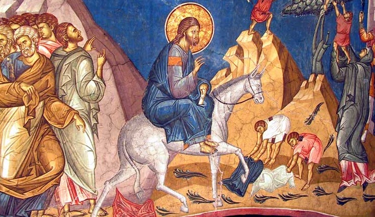 Sărbătoarea Intrării în Ierusalim a Mântuitorului nostru Iisus Hristos, cunoscută şi sub numele de «Duminica Floriilor», «Duminica Stâlpărilor» sau mai simplu «Floriile», este un praznic împărătesc ce face trecerea de la perioada Postului Mare la Săptămâna Mare, a Pătimirilor şi a Învierii Domnului Iisus Hristos, iar, cu câteva zile înainte de răstignirea Sa, Mântuitorul a fost primit de mulţimile care Îl slăveau şi Îl cinsteau, la intrarea Sa în Ierusalim, călare pe un mânz de asină, ca pe Mesia şi ca pe Împăratul lui Israel. În semn de bucurie, mulţimile aruncau înaintea lui frunze de palmier sau de smochin, simbolul biruinţei şi chiar şi copiii îi strigau cuvinte de laudă. Se ştie că de-a lungul vieţii Sale pământeşti, Iisus mai fusese la Ierusalim, dar de fiecare dată prezenţa Sa în cetatea lui David trecuse neobservată. Dar, spre deosebire de ultima Sa venire, în cea pe care o cinstim în «Duminica Floriilor», când evenimentul se transformă într-o sărbătoare populară, Mântuitorul intră în Ierusalim călare pe un asin ca să vestească tuturor pacea Lui Dumnezeu, care înseamnă împăcare cu Dumnezeu, cu noi înşine şi cu semenii, iar asinul era simbolul păcii şi ar trebui înţeles de toţi ca atare. Cu toate acestea, Acela Care vine să aducă pacea este acuzat pe nedrept de un pretins complot împotriva stăpânirii, chiar dacă cei ce aduceau aceste acuze erau cu totul ostili stăpânirii străine. Aşadar, Cel ce a venit să aducă pacea omului cu Dumnezeu este acuzat de blasfemie înaintea Lui Dumnezeu. Cel ce a venit să ne aducă pace şi tămăduire sufletelor este scuipat şi pălmuit ca unul care ar fi fost nedemn de numele de om! Cel ce a venit să ne aducă adevărata împăcare izvorâtă din iubire a fost răstignit ca un tâlhar şi ca un potrivnic semenilor săi. Poate, de aceea, Crucea Mântuitorului este semnul răutăţii omenirii către Cel Bun şi Iubitor, iar Învierea Sa este semnul biruinţei Lui Dumnezeu asupra acestei răutăţi şi al întoarcerii ei întru adevărată pocăinţă. Mântuitorul intră în Ierusalim ca un Împărat al păcii, iar mulţimile care L-au întâmpinat, Îl aclamă ca pe Mesia, Fiul lui David şi Împăratul lui Israel. Cu câteva zile mai înainte, Iisus înviase pe Lazăr din Betania, o localitate din apropierea Ierusalimului, vestea acestei minuni răspândindu-se la Ierusalim şi în împrejurimi. Iar, în drum spre cetatea lui David, Mântuitorul cu ucenicii Săi trec din nou prin Betania, să-l vadă pe Lazăr înviat şi pe surorile acestuia, Marta şi Maria, fiind primiţi cu entuziasm! Aici, li se pregăteşte o cină a recunoştinţei în casa lui Simon leprosul, vindecat tot de către Iisus. În timpul mesei, Maria, manifestându-şi dragostea şi recunoştinţa pentru învierea din morţi a fratelui său, unge cu mir curat picioarele Mântuitorului, gest care l-a scandalizat pe Iuda, viitorul trădător, care o ceartă pentru risipa făcută. În replică, Iisus răspunde printr-o nouă prevestire a morţii Sale: „Pentru ziua îngropării Mele l-a păstrat, căci pe săraci îi aveţi pururea cu voi, dar pe Mine nu Mă aveţi pururea” (Ioan 12, 7-8; Matei 26, 12). Domnul nostru ştia că nu peste multe zile, Maria se va număra printre mironosiţele care se vor îndrepta spre mormântul Său, ca să-I ungă trupul cu miresme. Unii dintre iudeii prezenţi atunci în Betania s-au convins de realitatea învierii lui Lazăr şi au crezut în Iisus, fapt care i-a determinat pe mai-marii lor, arhierei sau membri ai Sinedriului, în frunte cu Caiafa, să hotărască uciderea Mântuitorului, dar şi a celui înviat de El (Ioan 11, 47-53). Să ne fie de învăţătură, că năzuinţa de mântuire sufletească, nu exclude preocuparea legitimă pentru asigurarea unui trai material decent şi vieţuirea fericită în această lume, fiindcă Dumnezeu ne-a dăruit acest pământ, cu toate frumuseţile şi bogăţiile sale spre a ne bucura de ele! Deci, în aceste zile întristate prin pandemie, când repetăm «Osana» şi ne gândim la mântuirea fiinţei noastre, să cuprindem toate aspiraţiile de mai bine, pentru noi, pentru familiile noastre şi pentru tot neamul românesc! Fără nici o îndoială că temelia credinţei noastre creştineşti stă pe convingerea nestrămutată că Acela Care a pătimit, S-a răstignit şi a murit pe Cruce între doi tâlhari pe dealul Golgotei a fost Fiul Lui Dumnezeu, Iisus Hristos, Mântuitorul lumii, pentru că El a făcut aceasta din dragoste mare pentru noi, oameni, de bunăvoie, ca să ne mântuiască de păcatele noastre. Aşadar, Îl vedem pe Mesia intrând în Ierusalim ca un Împărat biruitor călare pe un asin, smerit şi blând. El vine să împlinească cele spuse de prooroci, vine să se facă de acum cunoscut poporului, intră ca un Împărat biruitor în Ierusalim, aşa cum altădată se întorceau victorioşi împăraţii David şi Solomon. Iisus, Cel pe care-L ştim atât de smerit şi de umilit, intră acum triumfal, în cetatea Ierusalimului, pentru că mai întâi de toate, vrea să Se arate poporului ca Împărat al lui Israel, apoi, această intrare sărbătorească în Ierusalim, avea să fie modul intrării Sale în Ierusalimul Ceresc!