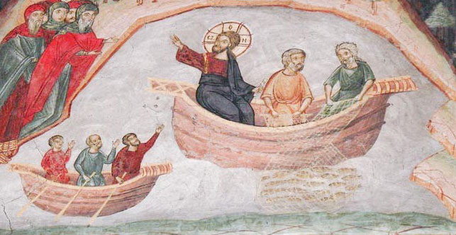 Această barcă nu va pieri niciodată, după cum a profeţit Domnul Însuşi, că «nici porţile iadului nu o vor înfrânge». Faptul acesta devine extrem de important, fiindcă cei patru viitori Apostoli sunt martori ai acestei scene, când Mântuitorul Hristos le arată de ce a venit în lume şi la ce înaltă slujire sunt ei chemaţi.