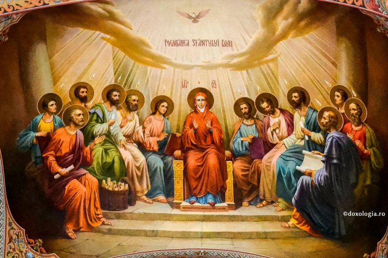 De aceea, pentru ce nu v-am spus Eu vouă în mod deliberat, am să vi-l trimit pe Duhul Sfânt, care să completeze ceea ce v-am spus Eu. Și El, Care este Duhul Adevărului, vă va spune vouă adevărul. Voi, însă, să nu vă mâhniți”, după care Iisus Hristos i-a luat cu El pe un munte înalt, iar acolo Și-a luat rămas bun de la ei şi S-a Înălțat la Cer în văzul tuturor, dar nu înainte de a-i fi binecuvântat și înainte de a le fi poruncit: „Mergând, învățați toate neamurile, învățându-le să păzească pe toate câte v-am poruncit Eu vouă și să le botezați în numele Tatălui și al Fiului și al Sfântului Duh”, iar, în felul acesta, avem înaintea ochilor minţii, chiar Sfânta Treime, în cele trei Persoane, invocate de către Însuși Mântuitorul Hristos, Care este Una dintre Ele! Cu precădere, în final, să mai reţinem faptul că Sfântul Duh Se numeşte «Mân gâietor», ca Unul Care are putere să ne mângâie şi să ne aline suferinţele, fiindcă pe El L-am primit în locul lui Hristos şi El mijloceşte, cu gra¬iuri nespuse, pentru noi către Dumnezeu, ocrotindu-ne ca un iubitor de oameni, ca şi Hristos! Deci, într-un cuvânt, tot ceea ce are Tatăl şi Fiul are şi Duhul Sfânt, afară de nenaştere şi naştere, întrucât El purcede din Tatăl. Aşadar, Duhul Sfânt revărsându-Se, lumea s-a umplut de daruri şi, prin El, toate neamurile au fost călăuzite la cunoaşterea adevăratului Dumnezeu, iar Apostolii au primit puterea de a alunga toată boala şi toată neputinţa! Iar, pentru că Iisus Hristos a pregătit venirea Sfântului Duh peste Ucenicii Săi şi peste lumea aceasta pământească, Însuşi Dumnezeu Creatorul ne arată că aceasta este ziua voită de Tatăl, făgăduită de Fiul şi împlinită de Sfântul Duh, deci, ziua deplinei revelaţii a Sfintei Treimi!