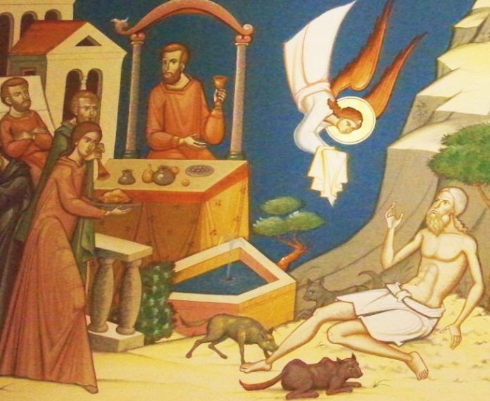 Zis-a Domnul: «Era un om bogat care se îmbrăca în porfiră şi în vison, veselindu-se în toate zilele în chip strălucit, iar un sărac, anume Lazăr, zăcea înaintea porţii lui, plin de bube»