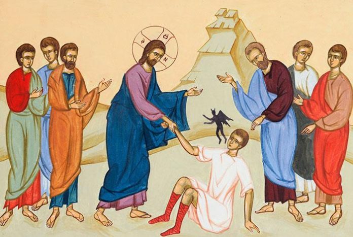 Cu acest prilej, Sfântul Ev. Matei, ca de altfel toți Evangheliștii sinoptici, ne istorisește o minune aparte, minune săvârșită de către Domnul Iisus Hristos la rugămintea adresată, în genunchi, de către tatăl unui copil cuprins de o boală care-l aducea adesea în primejdie de moarte, cu toate că în relatările Evangheliștilor sinoptici, aceeaşi minune este prezentată ușor diferit, în special dialogul purtat între tatăl copilului și Mântuitorul Hristos, fiecare dintre ei subliniind anumite aspecte extrem de interesante şi demne de atenţie prin resorturile lăuntrice ale posibilităţilor de abordare, pentru că, orice s-ar spune, lecturând relatarea minunii, Evangheliștii sinoptici ne demonstrează că momentul vindecării copilului lunatic nu este unul oarecare sau ales la întâmplare, ci, după ce tatăl copilului ascultă observaţia Mântuitorului şi îndemnul Său: “De poți crede, toate sunt cu putință celui care crede” (Mc. 9, 23), îndată ni se prezintă şi răspunsul tatălui, care se trezeşte şi se aude strigând cu lacrimi: «Cred, Doamne! Ajută necredinței mele!» (Mc. 9, 24), iar prin aceasta se vădeşte în mod lămurit sinergia, adică, pe de o parte, contribuția omului, respectiv credința după putință a tatălui copilului bolnav, iar pe de alta, intervenția, «mila» Lui Dumnezeu, deoarece tatăl bolnavului, poate nu îndeajuns de credincios, dar, în pragul disperării, poate că şi înainte credea, cât credea, în puterea Mântuitorului, însă, atunci când i s-a cerut o credință puternică şi adevărată, acesta a realizat faptul că mai înainte credința sa nu era una puternică, nici chiar suficientă, dar, în momentul de încercare, de cumpănă, atunci când vindecarea copilului bolnav era pusă, oarecum, în balanță prin tăria credinței lui, tatăl a făcut o sforțare şi o mărturisire fundamentală, definitorie pentru viaţa lui şi chiar pentru viaţa fiecăruia dintre noi, şovăitori cum suntem şi îndoielnici în multe privinţe! Prin urmare, tatăl copilului bolnav, poate credea în felul său, însă, abia acum a realizat că tot ceea ce ar fi trebuit să fie credință adevărată, în cazul lui, de fapt, era mai degrabă necredință sau o credinţă insuficientă, pentru că în momentul în care este adus tânărul înaintea Lui Dumnezeu, Mântuitorul ceartă duhul cel rău care era în el şi apoi îl vindecă, oferindu-l sănătos tatălui său, iar Bunul Dumnezeu i-a vindecat copilul pentru această umilinţă a lui, pentru această smerenie pe care a dobândit-o prin faptul că I-a cerut lui Hristos să-i mărească mai mult credinţa şi să i-o întărească! De aici, putem conchide că Dumnezeu ne arată Mila şi Bunătatea Sa, prin puterea vindecătoare asupra bolii şi prin alungarea diavolului din viaţa noastră!