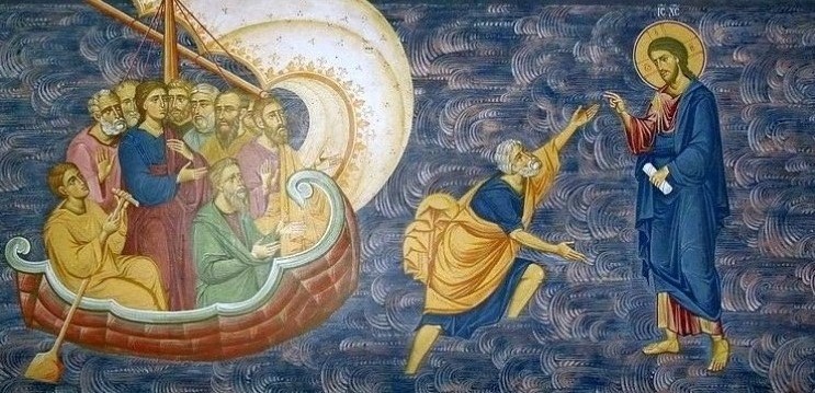 «Iar Petru, coborându-se din corabie, a mers pe apă şi a venit către Iisus»