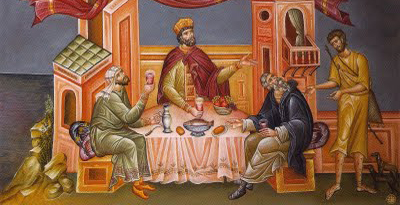 «Iar un sărac, anume Lazăr, zăcea înaintea porţii lui, plin de bube, poftind să se sature din cele ce cădeau de la masa bogatului»!