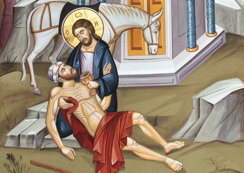 În Duminica a 25-a după Rusalii; Ap. Efeseni 4, 1-7; Ev. Luca 10, 25-37 (Pilda samarineanului milostiv), Evanghelia care se citeşte la Sfânta şi Dumnezeiasca Liturghie în Casa Dumnezeului Atotputernic, ne aduce înaintea ochilor minţii şi a simţirii sufletului nostru, una dintre cele mai frumoase şi mai pilduitoare parabole rostite de către Mântuitorul Iisus Hristos, cunoscută sub numele de «Pilda samarineanului milostiv», tocmai pentru a fi citită înainte de Postul Naşterii Domnului care începe la 15 noiembrie şi care ne învaţă că orice om aflat în primejdie, trebuie sprijinit şi ajutat, fără a ţine cont de diferenţele etnice, religioase, sociale sau de altă natură, pentru că în acest fel, ni se dezvăluie şi taina mântuirii neamului omenesc, în Iisus Hristos, Fiul Lui Dumnezeu, Cel ce a coborât din ceruri şi S-a făcut Om, pentru ca pe oameni să-i mântuiască de păcat şi de moarte, dăruindu-le o viaţă veşnică! Din comentariile patristice, reţinem faptul că samarineanul Îl reprezintă pe Mântuitorul Hristos, cel căzut între tâlhari întruchipează omenirea pandemică şi apăsată de marea cădere în păcat, Ierusalimul simbolizează Raiul Ceresc, Ierihonul este lumea pământească şi trecătoare, cu tâlharii-diavoli care îl atacă neîncetat pe om, rănile celui căzut între tâlhari sunt păcatele pentru care suferim şi în pandemie, preotul şi levitul reprezintă Legea, casa de oaspeţi este Biserica primitoare, iar ungerea cu untdelemn şi turnarea de vin peste răni constituie «vaccinul» pentru vindecarea oamenilor de boala păcatului şi care înseamnă «tratamentul» prin Botez şi Împărtăşirea cu Trupul şi cu Sângele Domnului Hristos. Iar nădejdea că Bunul Samarinean se va întoarce, nu exprimă decât revenirea Domnului nostru spre judecarea întregului neam omenesc! Cu siguranţă, cei doi dinari simbolizează Vechiul şi Noul Testament, dar şi cele două porunci ale iubirii de Dumnezeu şi de aproapele, pentru a ne descoperi că rugăciunea şi milostenia ne ajută să devenim, după viaţa pământească, moştenitori ai Împărăţiei Cerurilor. În final, să mai reţinem că într-un fel, coborârea de la Ierusalim la Ierihon înseamnă înstrăinarea omului de Dumnezeu sau secularizarea, prin căderea în păcat, că omul căzut în mâinile tâlharilor şi lăsat aproape mort la marginea drumului reprezintă neamul omenesc, care din cauza păcatelor cade în multe patimi şi destrăbălări, când ajunge aproape mort sufleteşte, iar, o ridicare mântuitoare din această stare o face Domnul Iisus Hristos, deci, Samarineanul, pentru că preoţii şi leviţii Vechiului Testament erau neputincioşi în a-i oferi omului harul mântuitor. Dacă Samarineanul este considerat de către iudei un străin, fiindcă nu au văzut în El pe Mesia cel vestit de profeţi, acum, El ne îndeamnă spre milostenie şi vindecă rănile omului, care au fost produse de patimi şi de păcate, pentru că Domnul Hristos iubeşte fără limite şi nu pune graniţe în iubire, ca un Dumnezeu Care ne dezvăluie dimensiunea Iubirii proniatoare şi fără margini, în spaţiu şi în timp, împărtăşindu-ne din lumina cea neînserată a Dumnezeirii Sale!