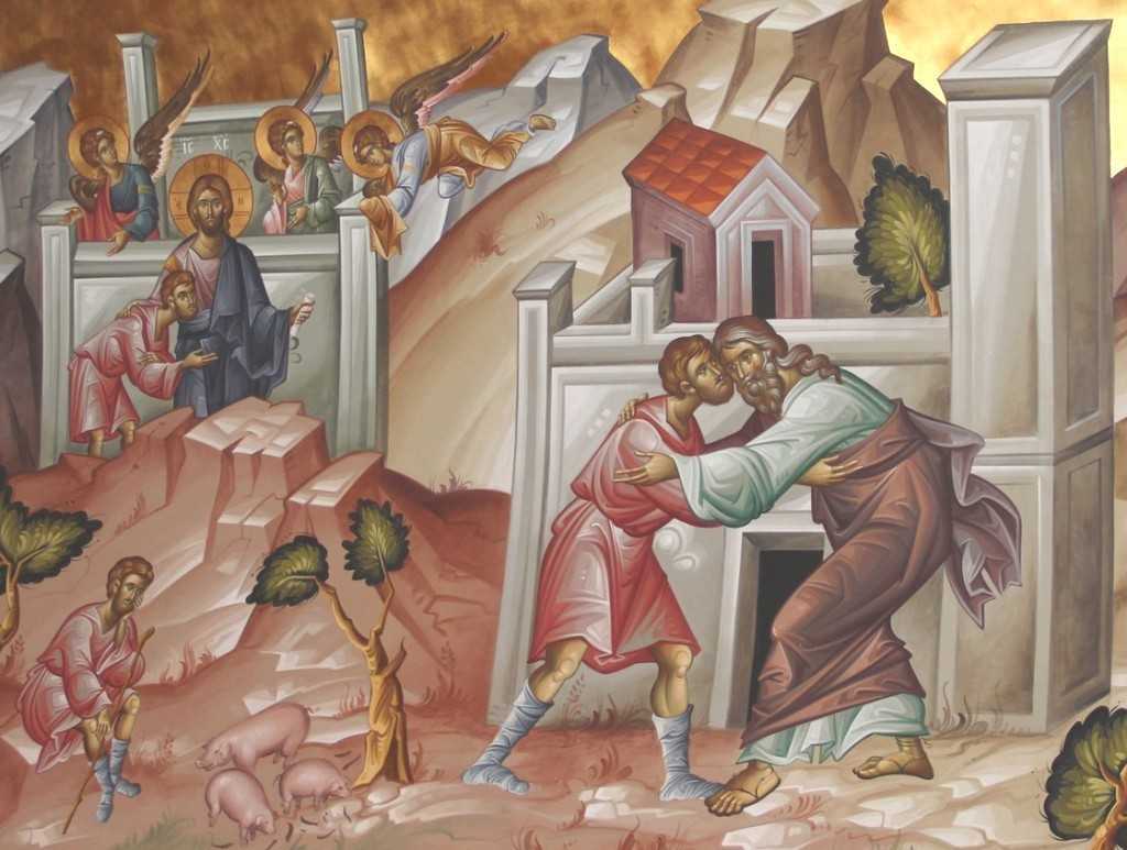 În Duminica a 34-a după Rusalii (a Întoarcerii Fiului risipitor); Ap. 1 Corinteni 6, 12-20; Ev. Luca 15, 11-32, cea de-a doua a Triodului, la Sfânta şi Dumnezeiasca Liturghie se va citi o minunată Pericopă Evanghelică din care desluşim o mare învăţătură a vieţii pământeşti, prin exemplul individualizat al Fiului risipitor/rătăcitor care se întoarce la casa părintească după rătăciri îndelungate într-o ţară străină, o patrie nedefinită a păcatului, unde a ajuns să jinduiască după mâncarea pe care o mâncau porcii, iar apoi este primit cu dragoste părintească şi iertat de tatăl său, pentru că dincolo de orice apreciere sau de vreo suspiciune, tema principală a unei asemenea frumoase pilde/parabole a Noului Testament este cea a căinţei şi a întoarcerii păcătosului la calea cea dreaptă, iar din cele trei personaje ale acestei parabole: Fiul rătăcitor, fratele fiului rătăcitor şi părintele acestuia, fiecare întruchipează o anumită atitudine faţă de aproapele nostru, mai ales că parabola în sine constituie reflexul situaţiei cu care se confrunta de multe ori Mântuitorul Iisus Hristos la acea vreme, iar ascultătorii Săi se considerau a fi în poziţia fiului cuminte, care urma să decidă dacă va accepta invitaţia tatălui iubitor şi iertător şi dacă-i va împărtăşi bucuria, pentru că, din păcate, bucuria tatălui, după cum citim în parabolă, a fost umbrită de lipsa de iubire a fiului cuminte, cel care jubila de bucurie la aflarea oii şi a drahmei pierdute, iar la bucuria întoarcerii Fiului risipitor participă doar tatăl acestuia, care pregăteşte festinul pe măsura bucuriei întoarcerii fiului apostat (Luca 15, 22-23), deci, prin aceasta, noi desluşind cu atenţie că Tatăl iubitor este imaginea Lui Dumnezeu, iar, dacă tatăl îl simbolizează pe Dumnezeu, atunci Dumnezeu este singurul Care cunoştea întreaga dramă interioara prin care trecuse tânărul care rătăcise într-o ţară îndepărtată, expresie a distanţei incomensurabile dintre Dumnezeu şi cel păcătos, trăind în afara prescripţiilor divine, anesteziat de iluziile câştigate prin cheltuirea averii, precum şi de plăcerea desfrânărilor şi de mărirea slavei deşarte, care-i creau o falsă măreţie şi o iluzorie satisfacţie, numai că un astfel de trai hedonist, pur instinctual, la care aderase tânărul, i-a fost răsplătit, după un timp, cu paşterea porcilor, o ocupaţie înjositoare şi dispreţuită de evrei, legată de o viaţă care l-a umilit şi l-a făcut să trăiască încercarea lipsei celor elementare vieţii, căci, ajunsese până acolo încât nici porcii, cărora le acorda îngrijire şi protecţie, nu-şi împărţeau roşcovele cu el, dar, în final, pe fondul acestei asceze spirituale şi materiale, tânărul “şi-a venit în sine”, recunoscându-şi vina pe care a transformat-o într-o rugăciune de pocăinţă, formulată ad-hoc, în felul următor: “Tată am greşit la cer şi înaintea ta; nu mai sunt vrednic să mă numesc fiul tău. Fă-mă ca pe unul dintre argaţii tăi!”, poate cea mai elocventă dovadă a faptului că Dumnezeu şi Iubirea Sa mare pentru firea omenească cea căzută în păcat, ne învaţă că pentru a ieşi din moartea păcatului este nevoie de pocăinţă!