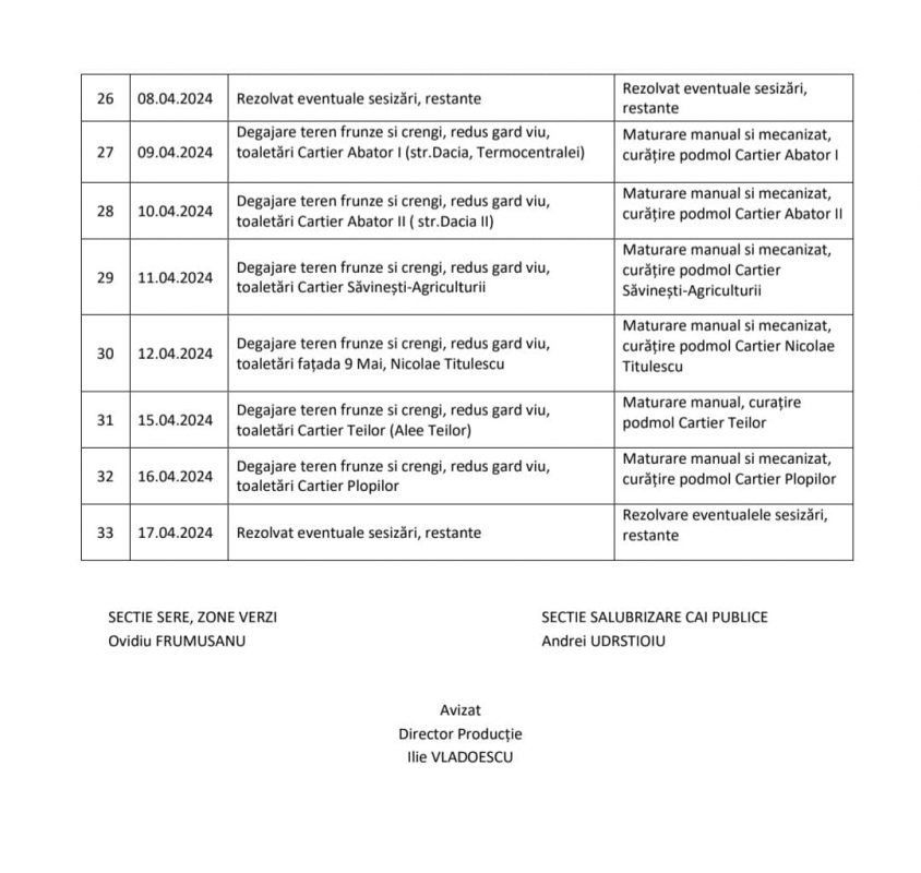 „Va fi un interval foarte aglomerat, în care societatea va interveni conform graficului alăturat.