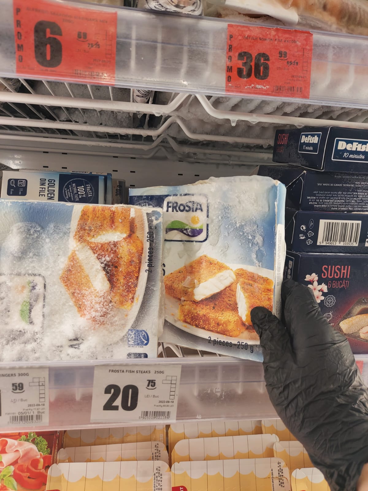 • comercializarea unor produse congelate cu exces de gheață și modificări organoleptice;