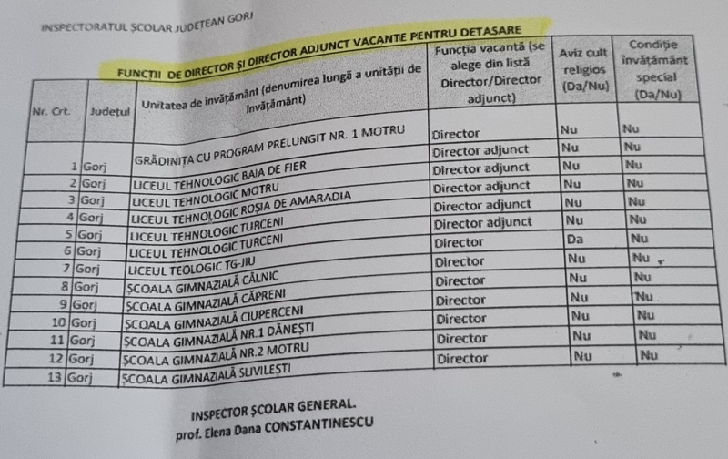 Cert este că declarațiile de atunci sunt contrare inventării acestui post de director adjunct, pe o listă cu posturi vacante unde se fac adăugiri din pix, în funcție de anumite interese. Cert este că transparența afișată de ISJ Gorj pălește în fața acestor fapte care ne demonstrează că schimbarea de la vârful acestei instituții durează foarte puțin.