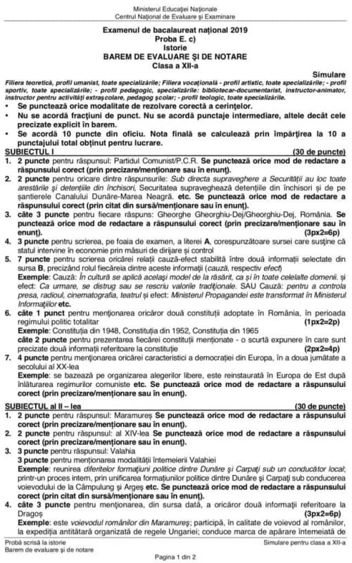 20 martie 2019 Proba E) c) – probă scrisă – proba obligatorie a profilului (matematică sau istorie)
