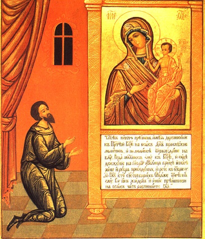 Maica Domnului păstrează chipul Bisericii care poartă în ea mântuirea prin care este mijlocitoare în faţa lui Dumnezeu şi puternica ocrotitoare a oamenilor dreptcredincioşi! După o veche tradiţie a Bisericii, Sfântul Evanghelist Luca a zugrăvit chipul Maicii Domnului încă din timpul vieţii pământeşti a Sfintei Fecioare, aşa că pentru creștinii ortodocși, Fecioara Maria, Născătoarea de Dumnezeu («Teotokos») nu reprezintă o excepție a condiției umane, ci un minunat exemplu de sublimă și supremă curățenie și feciorie trupească și sufletească, de sfințenie a ființei îndumnezeite, a vasului pământesc ales de Dumnezeu pentru întruparea Fiului Său. Această interpretare se datorește în mare măsură Sfântului Ioan Damaschin, care, bazat pe Sfânta Scriptură, «Crezul» Ortodox și pe dogma stabilită la Sinodul Ecumenic de la Efes, din 431, după care Fecioara Maria a fost numită Maica Domnului. În secolul al 8-lea Sfântul Ioan Damaschin a scris atât de înțelept și de convingător despre rolul de mijlocitoare între dumnezeire și umanitate pe care l-a avut Fecioara Maria prin Nașterea lui Iisus și de despre adormirea și ridicarea la ceruri a Maicii Domnului.