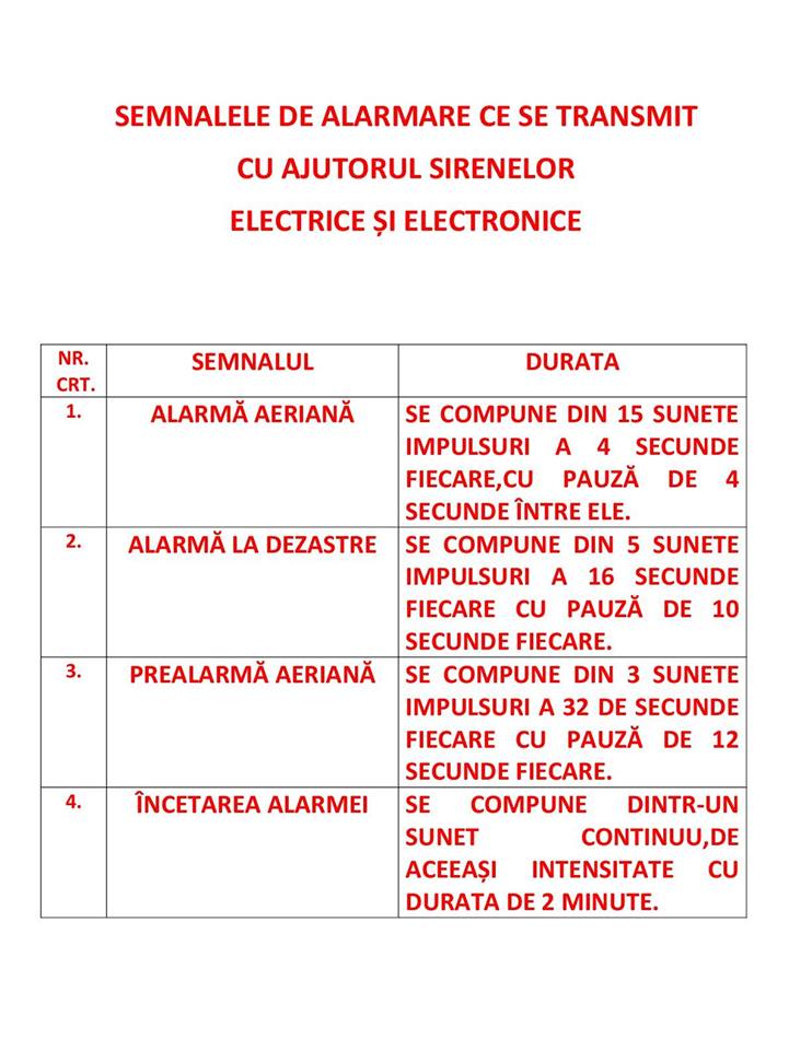 Un exercițiu de alarmare publică va avea loc miercuri, 4 iulie, în municipiul Târgu Jiu. Inspectoratul pentru Situații de Urgență Gorj va porni sirenele pentru câteva minute în intervalul 10:00 – 11:00. Exercițiul se repetă în prima zi de miercuri a fiecărei luni.