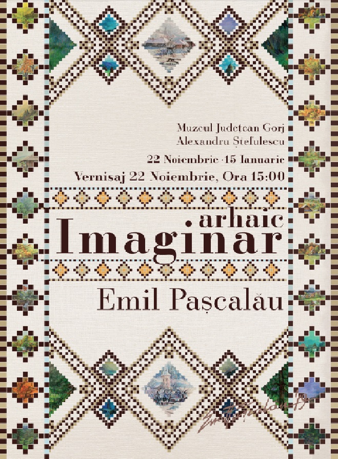 Mâine după-amiază, de la ora 15:00, la Muzeul Județean Gorj ”Alexandru Ștefulescu”, din Târgu Jiu (str. Geneva, nr. 8), va avea loc vernisajul expoziției de artă vizuală ”Imaginar arhaic”, semnată de artistul Emil Pașcalău. Expoziția rămâne deschisă publicului până la jumătatea lunii ianuarie 2020.