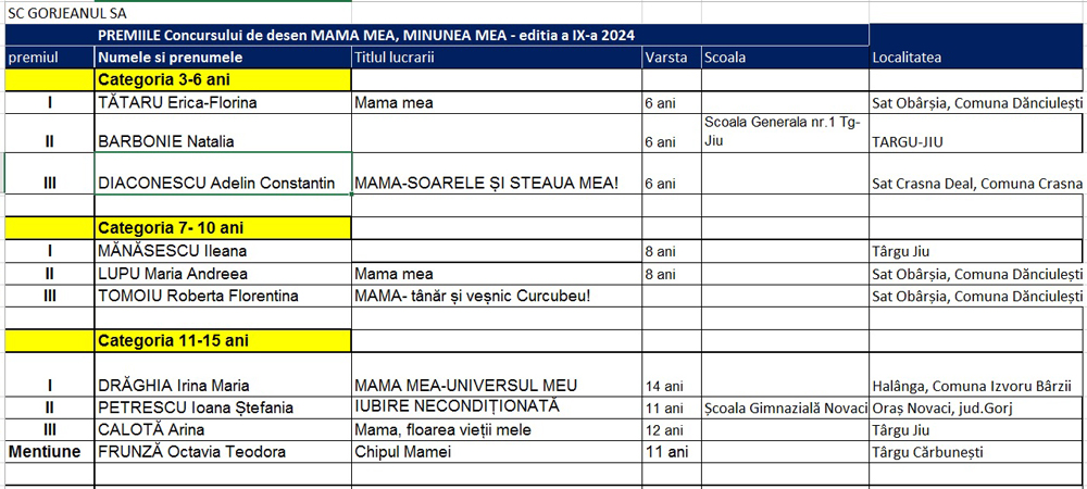 Felicitări tuturor participanților și câștigătorilor! Echipa Cotidianului ,,Gorjeanul” urează tuturor femeilor un călduros ,,La mulți ani!”, iar preșcolarilor și elevilor le transmitem să ne