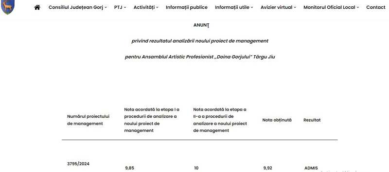 Un nou mandat în fruntea Ansamblului Artistic Profesionist „Doina Gorjului” din Târgu Jiu pentru managerul Gheorghe Porumbel. După ce a obţinut aproape nota maximă la evaluarea finală a managementului exercitat în perioada 2019-2023, Porumbel a avut posibilitatea legală să depună exclusiv un nou proiect de management. Potrivit legislației, managerii instituțiilor de cultură care la evaluarea finală a activităţii obţin cel puțin nota 9, au dreptul să prezinte un nou proiect de management, fără să se mai organizeze un concurs propriu-zis.