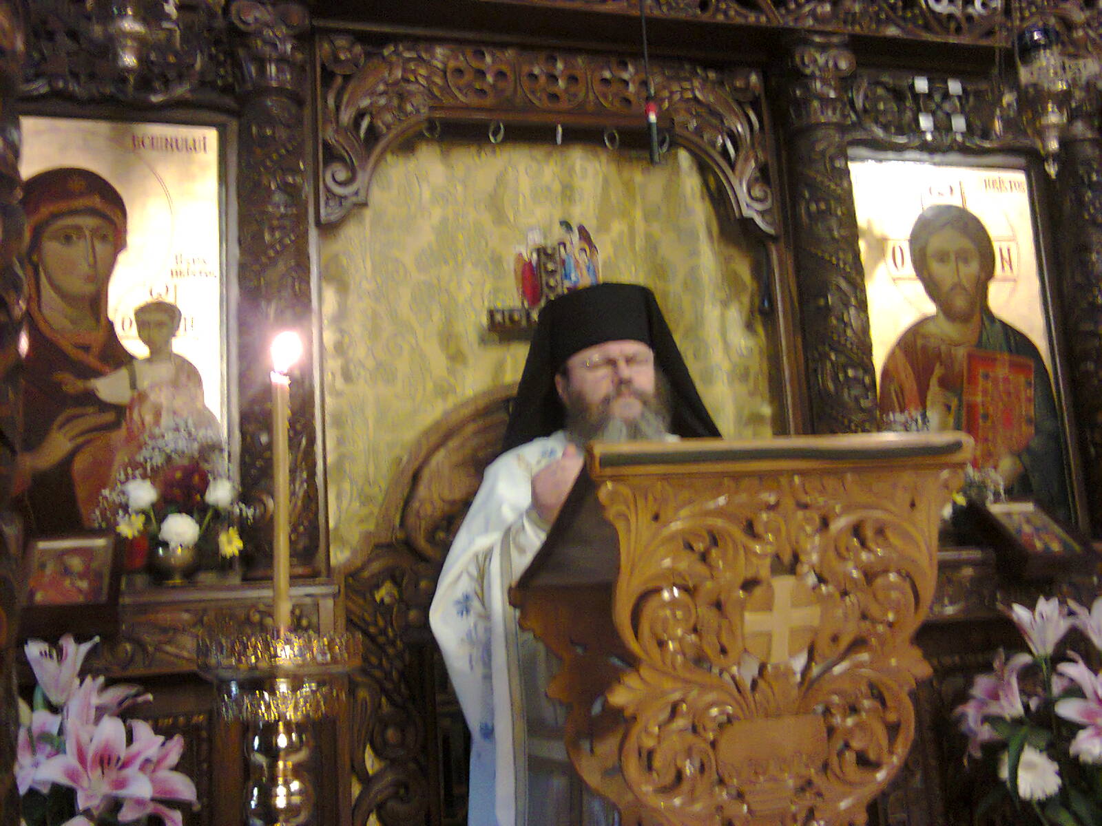 Arhanghelul Gavriil cu un crin în mână, iar, crinul este simbolul curăţiei, al purităţii, spunându-i cuvintele cunoscute: «Bucură-te, ceea ce eşti plină de har…Duhul Sfânt se va coborî peste tine!», după care Maica Domnului a răspuns: «Fie, mie, după cuvântul tău!», iar, aceasta este o minune că atunci, Maica Domnului a rămas însărcinată! Aceasta este «taina cea din veac ascunsă şi de îngeri neştiută», pentru că este un lucru dumnezeiesc până la Naşterea Domnului în ieslea din Bethleem, în cel mai umil loc! Sfânta Sfintelor în cel mai umil loc, deci, acestea sunt paradoxurile, pe care nu le putem cuprinde cu mintea noastră finită, cu gândirea imanentă, ceea ce înseamnă infinitul, transcendentul! Să înţelegem că atunci când omul se smereşte, se face mic, deci, cel care se smereşte foarte mult, pricepe lucruri foarte mari, dar, omul când se înalţă foarte mult, nu mai pricepe lucrurile mari, rămâne la lucruile mici din mintea lui! Deci, Dumnezeu a găsit pentru Naşterea Mântuitorului Iisus Hristos, cel mai umil loc, iar, caracteristica dumnezeirii este smerenia! Iisus Hristos Se naşte din veşnicie, din Tată fără de mamă, din Dumnezeu, Se naşte pe pământ din mamă fără de tată, din Sfânta Sfintelor care este Maica Domnului! Prin sfinţenia ei, Maica Domnului i-a depăşit şi pe îngerii din cer! Maica Domnului s-a dăruit Lui Dumnezeu şi trebuie să avem o mare evlavie pentru Maica Domnului, Împărăteasa cerului şi a pământului, Împărăteasa luminii, cea care are ca şi Dumnezeu, puterea să ne mântuiască! Să simţim fiorul iubirii Maicii Domnului în inima noastră! Pentru că Maica Domnului este Taina Tainelor şi este permanent printre noi, în viaţa noastră! Să-i mulţumim cu toţi, Maicii Domnului, că şi la Mănăstirea Lainici, am ajuns la acest praznic, pentru că este protectoarea întregii mănăstiri, pentru că ea este aceea care ne va întâmpina, dacă ne vom dovedi vrednici să ajungem în Împărăţia Lui Dumnezeu, acolo unde ea se află cu toţi sfinţii ei! De aceea, ne rugăm cu smerenie Maicii Domnului, ca să ne ajute şi pe noi să ne ducem cu bine această viaţă pământească şi să ne facă parte de fericirea dumnezeiască, să ne întâlnim cu Ea la marea zi a judecăţii, cu Mântuitorul Iisus Hristos şi cu toţii sfinţii, în veci-vecilor. Amin”!