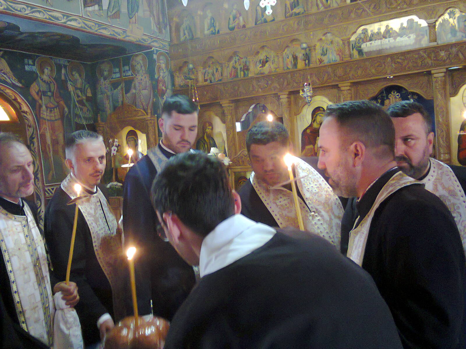 Mănăstirea «Sfânta Treime» Strâmba-Jiu, Preacuvioasa Maică Stareţă Marina Gligor Stavrofora şi Preacuvioasa Maică Stareţă Pahomia Pascu, de la Mănăstirea «Dealu Mare», Preacucernicii Preoţi de parohie: Pr. Antonie Făinişi (Strâmba-Jiu), Pr. Ilie Amzucu (Urdarii de Jos), Pr. Daniel Cornescu (Miluta), Pr. Petre Buşe şi Pr. Rusu Marin (Turceni) şi alţii. După ce a fost oficiat parastasul de pomenire a Maicii Domnului, în cuvântul de învăţătură duhovnicească, Preacuviosul Părinte Paisie a pornit de la faptul că Maica Domnului se bucură de o cinstire deosebită în teologia Bisericii Ortodoxe Române şi de o preţuire aleasă în evlavia credincioşilor ei, fiindcă îşi întinde Sfântul Acoperământ deasupra credincioșilor adunați la priveghere, iar, poporul îndurerat primește ocrotire și milostivire neîncetat! Maica Domnului se roagă şi astăzi pentru noi, a spus preacuviosul călugăr, acoperindu-ne cu omoforul milei și dragostei sale! De aceea, ori de câte ori o căutăm în rugăciune pe