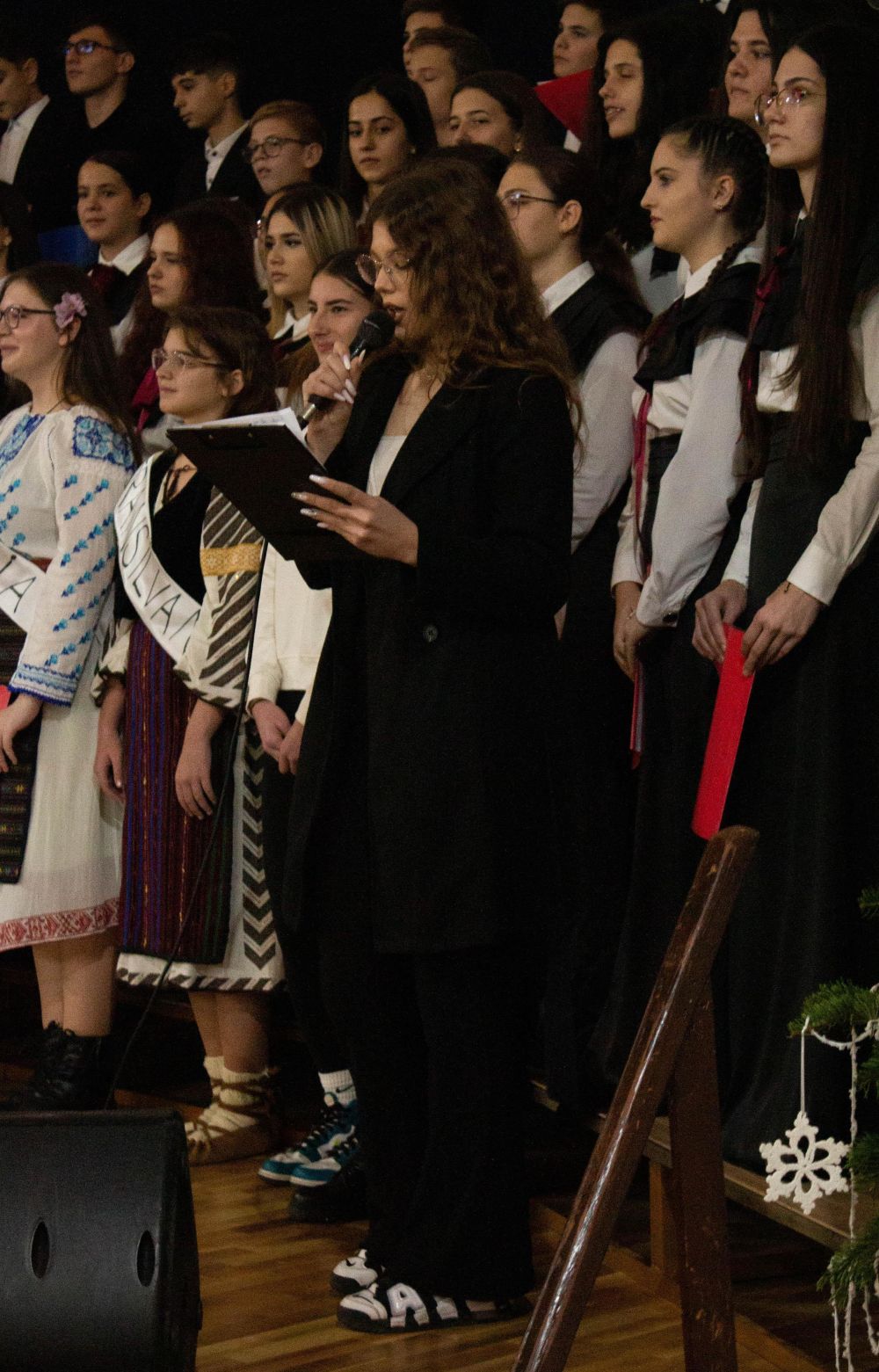 Pe tot parcursul scenetelor bine gândite de elevi și profesori, NOBLEȚEA a fost și ea mereu prezentă. Cum altcumva putem numi ținuta profesionist aleasă pentru cei din cor și cei din scenetele istorice și costumele naționale autentice în care erau îmbrăcate elevele care întruchipau România Mare, Basarabia, Bucovina și Transilvania? Dar privirile lor senine și atitudinea degajată- o pledoarie pentru înalt, cum ar putea fi încadrate?
