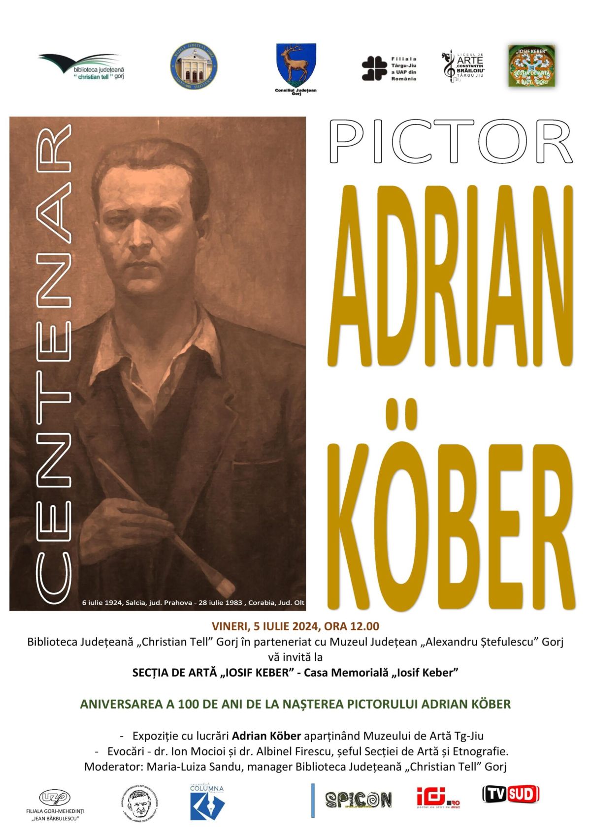 Anul acesta se împlinesc 100 de ani de la nașterea pictorului Adrian Kober, prilej cu care Biblioteca Județeană ,,Gen. Christian Tell” în parteneriat cu Muzeul Județean ,,Alexandru Ștefulescu” organizează la Secția de Artă ,,IOSIF KEBER” – Casa Memorială ,,Iosif Keber” din municipiul Târgu Jiu o manifestare culturală de excepție.