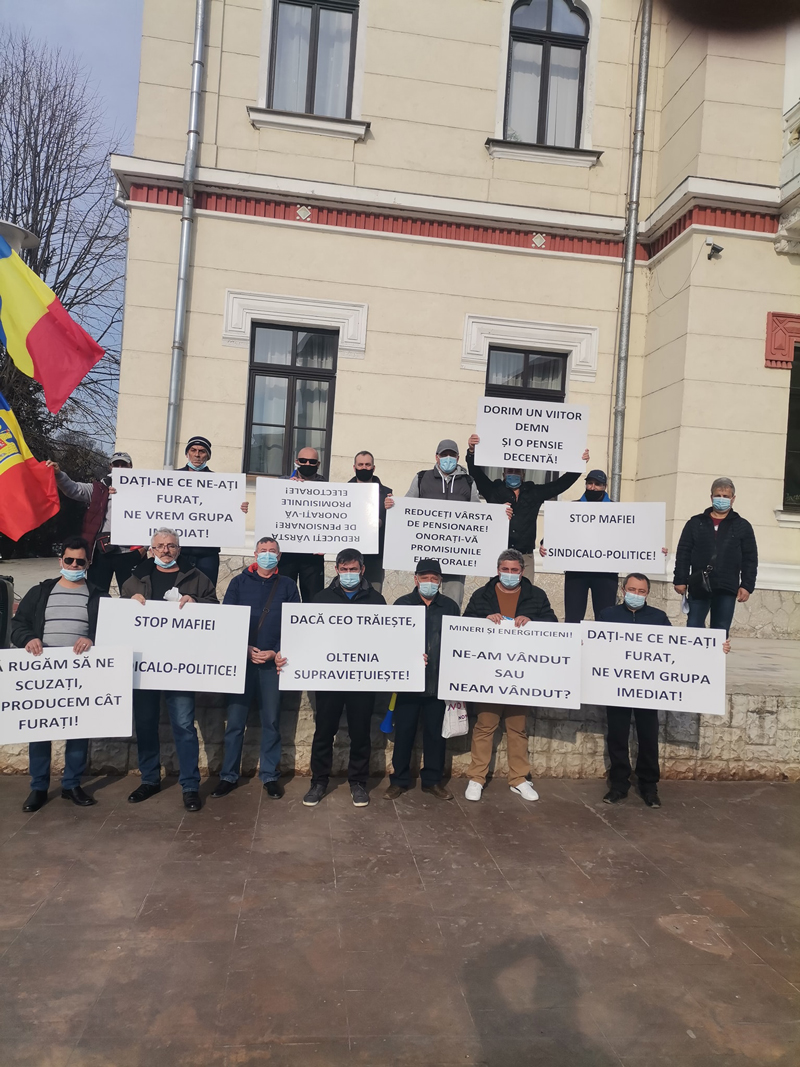 Iată mesajul lui Manu Tomescu, vicepreşedintele Sindicatului Energia Rovinari: ,,Chiar dacă federațiile sindicale ne-au lăsat singuri, această bătălie trebuie câștigată! Adoptarea proiectului de lege pentru reducerea vârstei de pensionare, proiect care se află în comisiile din Camera Deputaților, este cea mai sigură formă de protecție socială a minerilor și energeticienilor din CE Oltenia. Trebuie să fim cât mai mulți și cât mai hotărâți ca să luptăm până ne vom câștiga acest drept! Ne vedem în Piața Prefecturii”. Cei care protestează de două luni în central municipiului sunt angajaţi ai CEO reprezentați de sindicatele conduse de Nicu Bunoaica, Manu Tomescu şi Constantin Creţan.