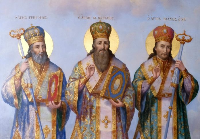 După ce la 1 ianuarie l-am sărbătorit pe Sfăntul ierarh Vasile cel Mare, arhiepiscopul Cezareei Capadociei, iar la 25 și 27 ianuarie am săvărșit pomenirea Sfăntului ierarh Grigorie Teologul, respectiv aducerea moaștelor Sfintelui părintelui nostru Ioan Gură de Aur, arhiepiscopul Constantinopolului, astăzi, 30 ianuarie 2023, Biserica noastră îi cinstește în chip deosebit și la un loc, printr-o sărbătoare mare cu cruce roșie în calendar, pe acești mari Părinți ai credinței ortodoxe.
