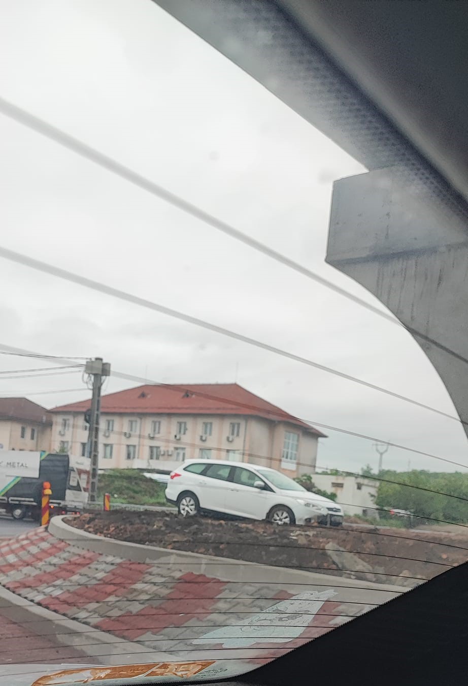 O mașină a ajuns exact pe rondoul giratoriului de la Dragoieni, chiar în apropierea postului de poliție. Deocamdată nu se știe cum a aterizat autoturismul acolo, dar imaginile au ajuns pe o pagină de profil a șoferilor.